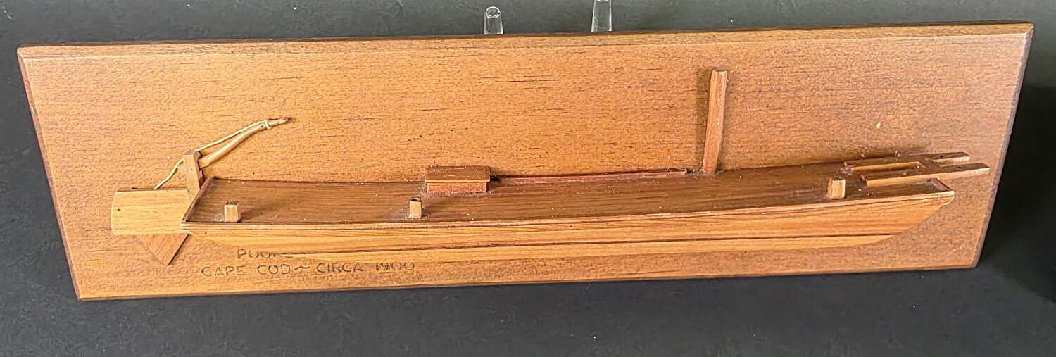 Two Vintage Hand Carved Diminutive Half Hull Boat Models, 20th century