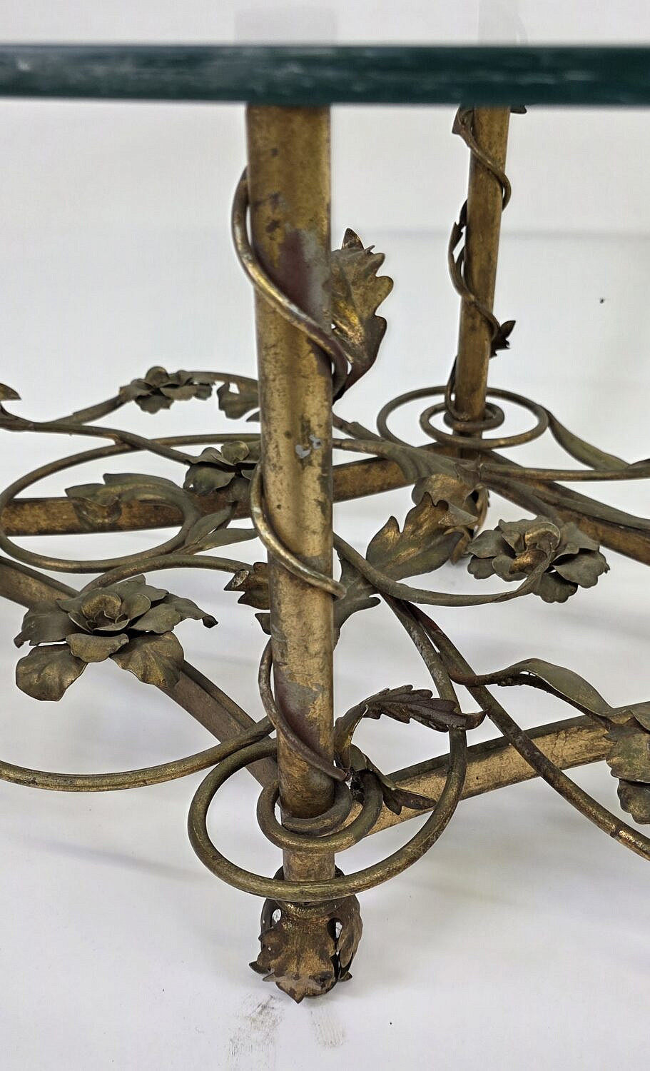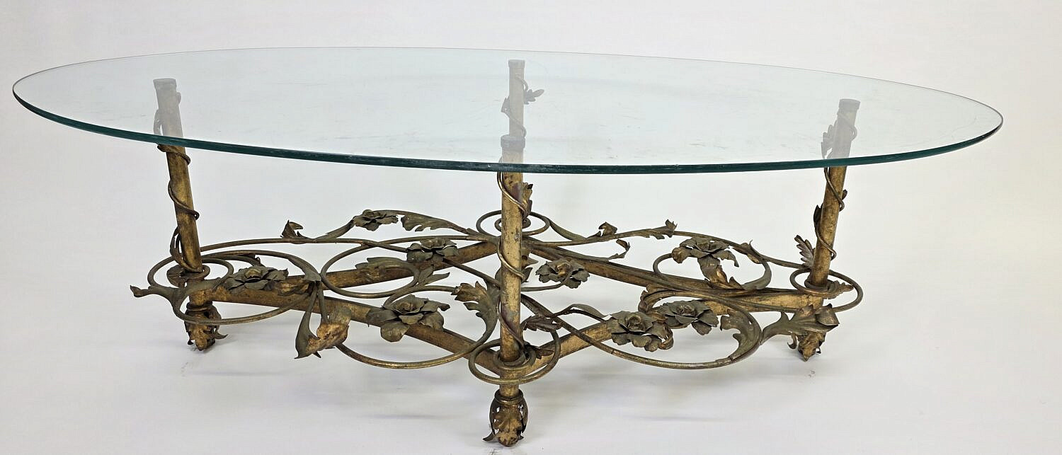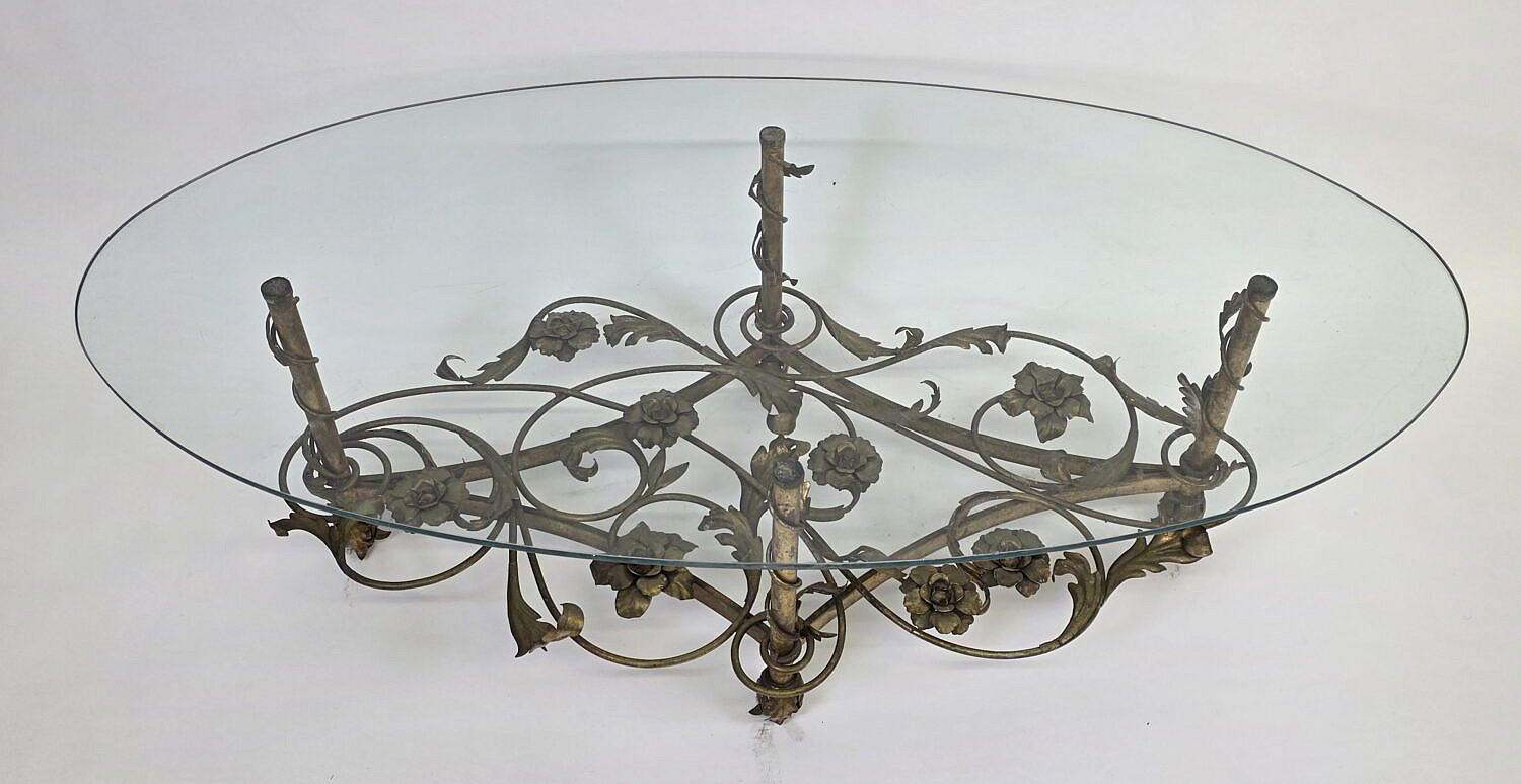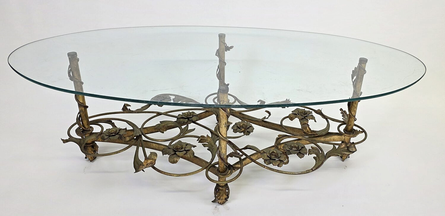 Vintage Art Deco Floral Gilt Oval Coffee Table, 20th century