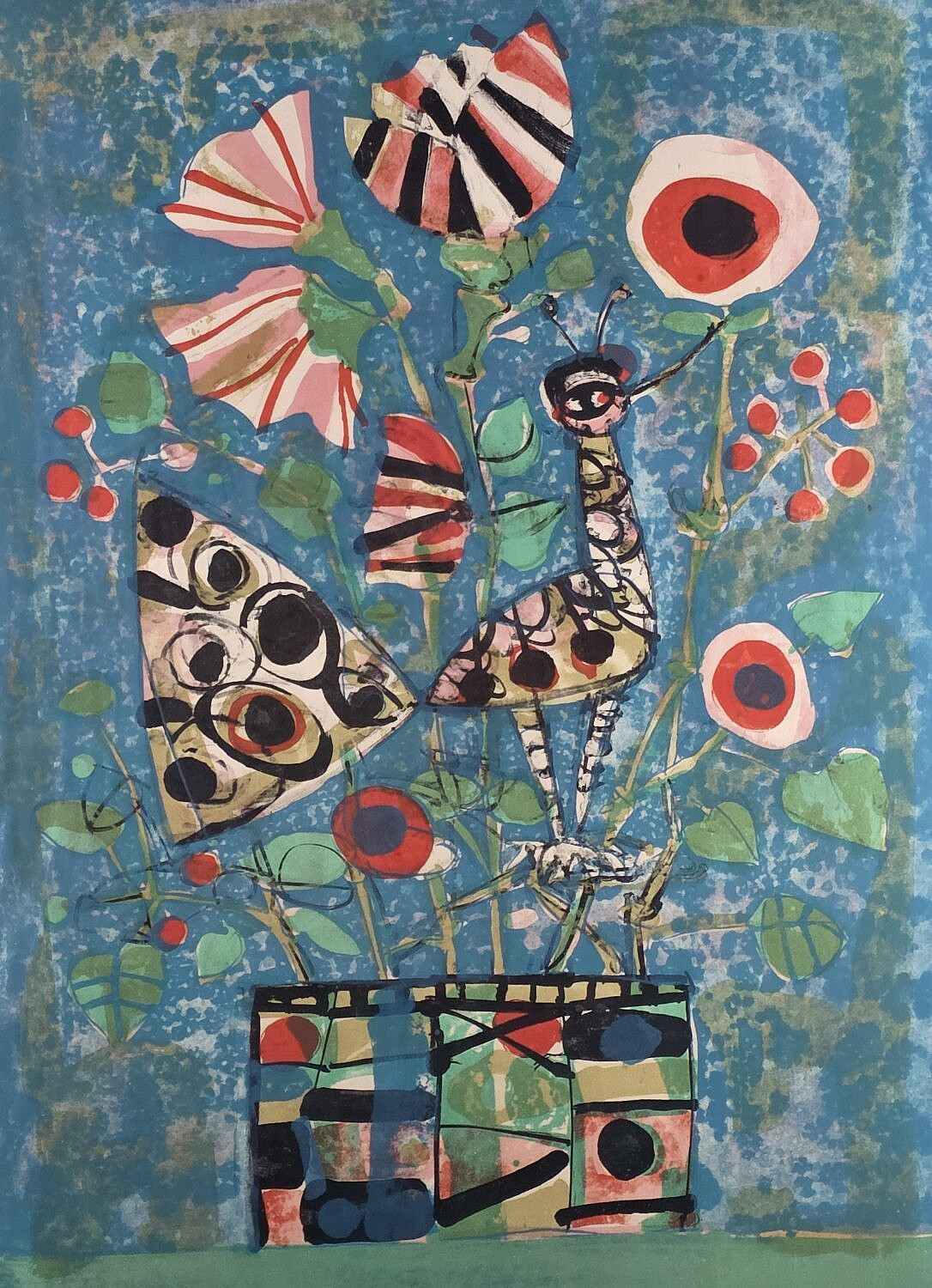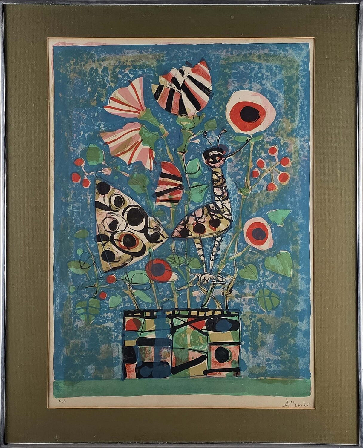 Vintage Paul Augustin Aizpiri (Paris, France 1919-2016), Abstract Floral Still Life Lithograph Print, pencil signed lower right right, depicting a vase of flowers.