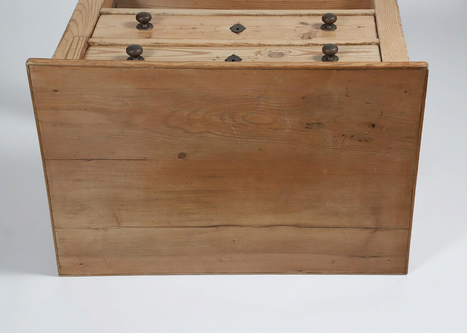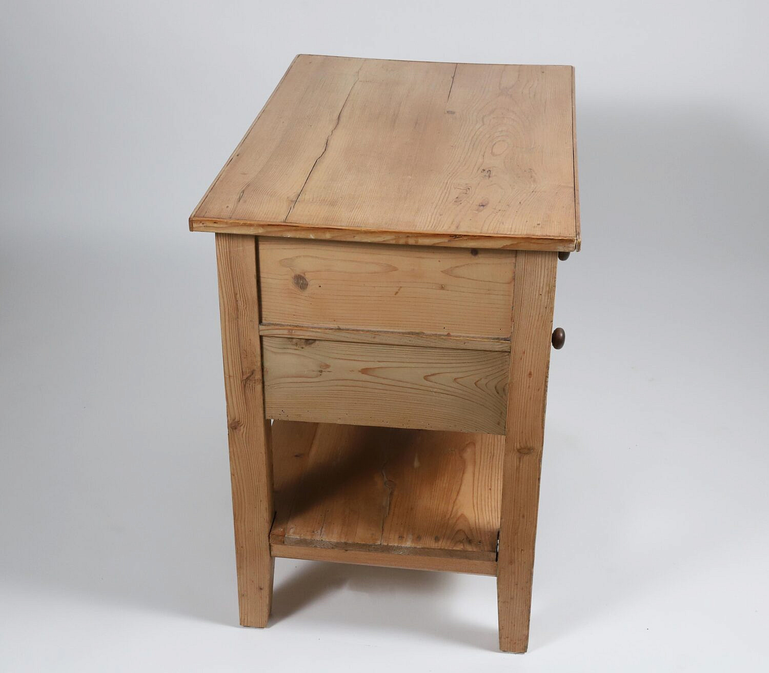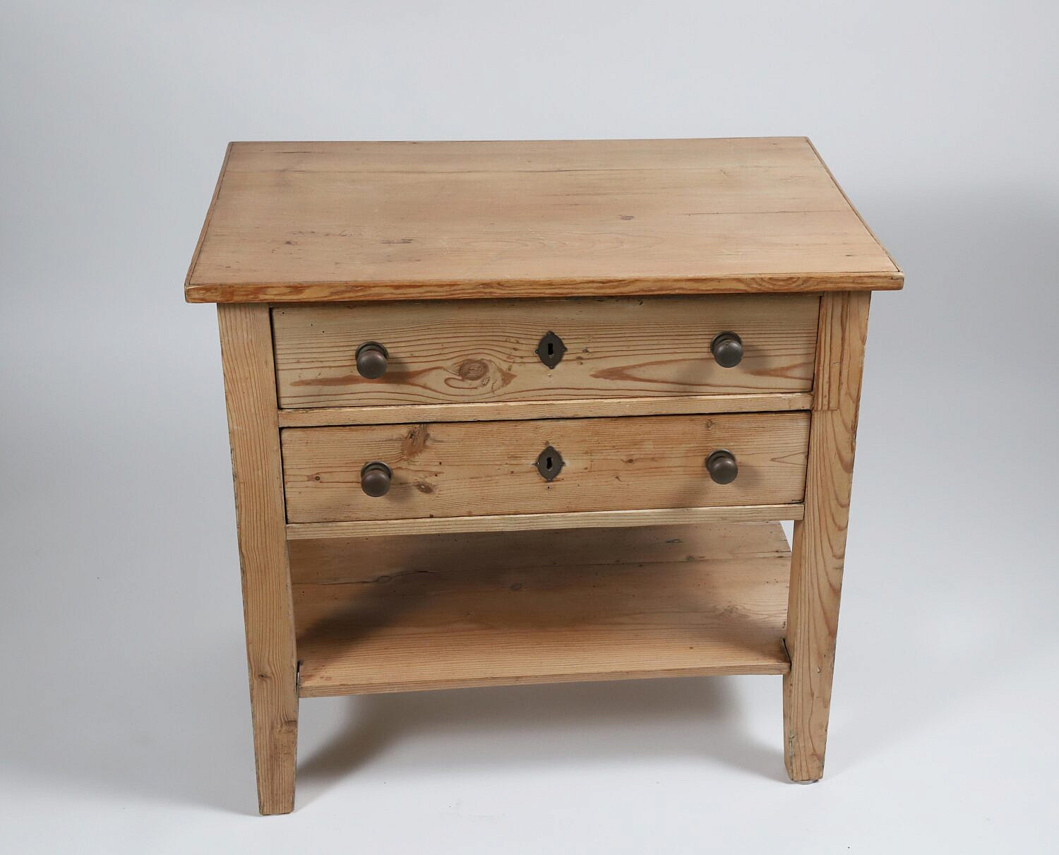 Vintage Pine Two Drawer Side Table with Shelf Stretcher
