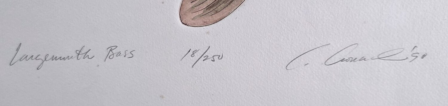 Vintage Signed Limited Edition Largemouth Bass Fish Serigraph Print, circa 1990, signed illegibly lower right, limited edition #18/250.