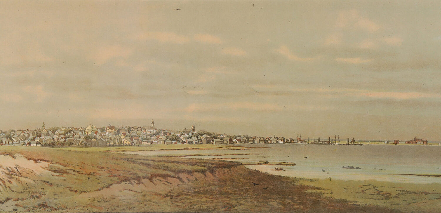 Wendell Macy 1884 Stone Lithograph “View of Town of Nantucket from Monomoy”
