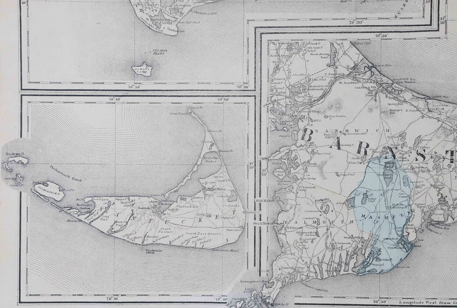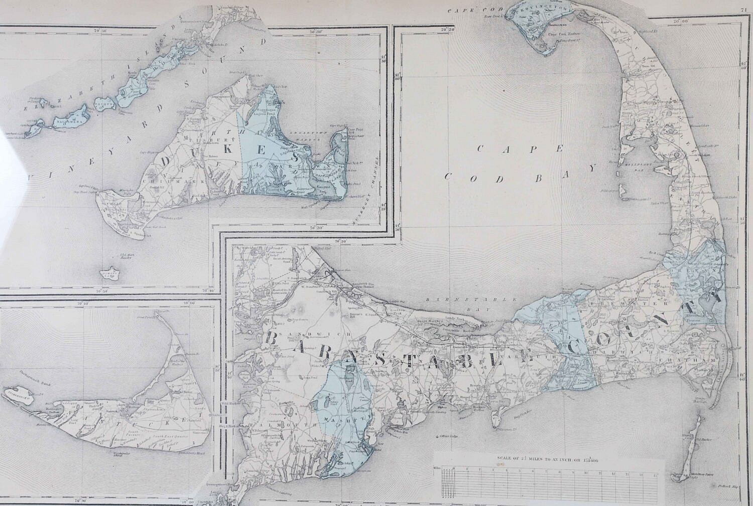 1860 Map of Barnstable and Dukes County Including Cape Cod, Martha’s Vineyard and Nantucket, in thin wood frame with gilt liner