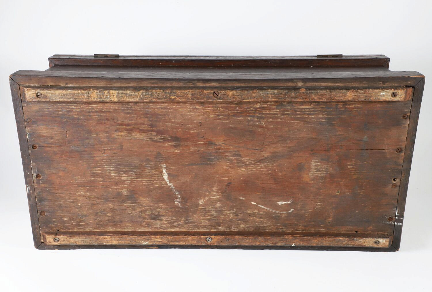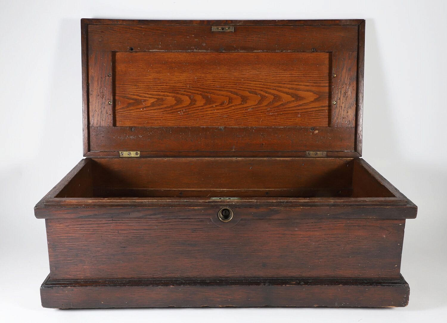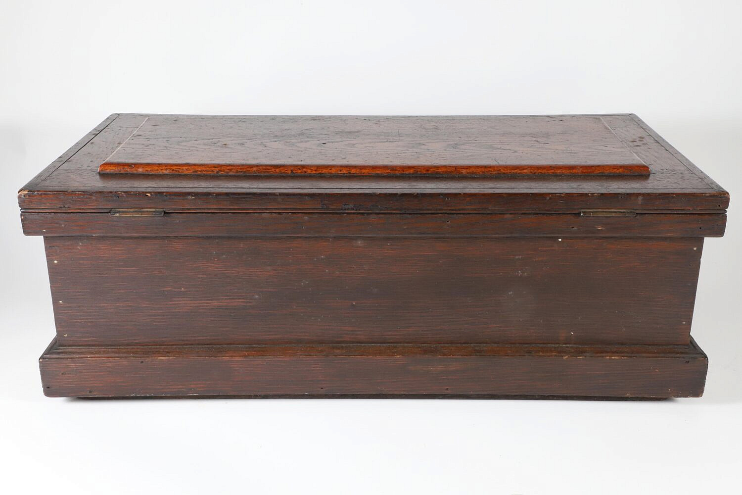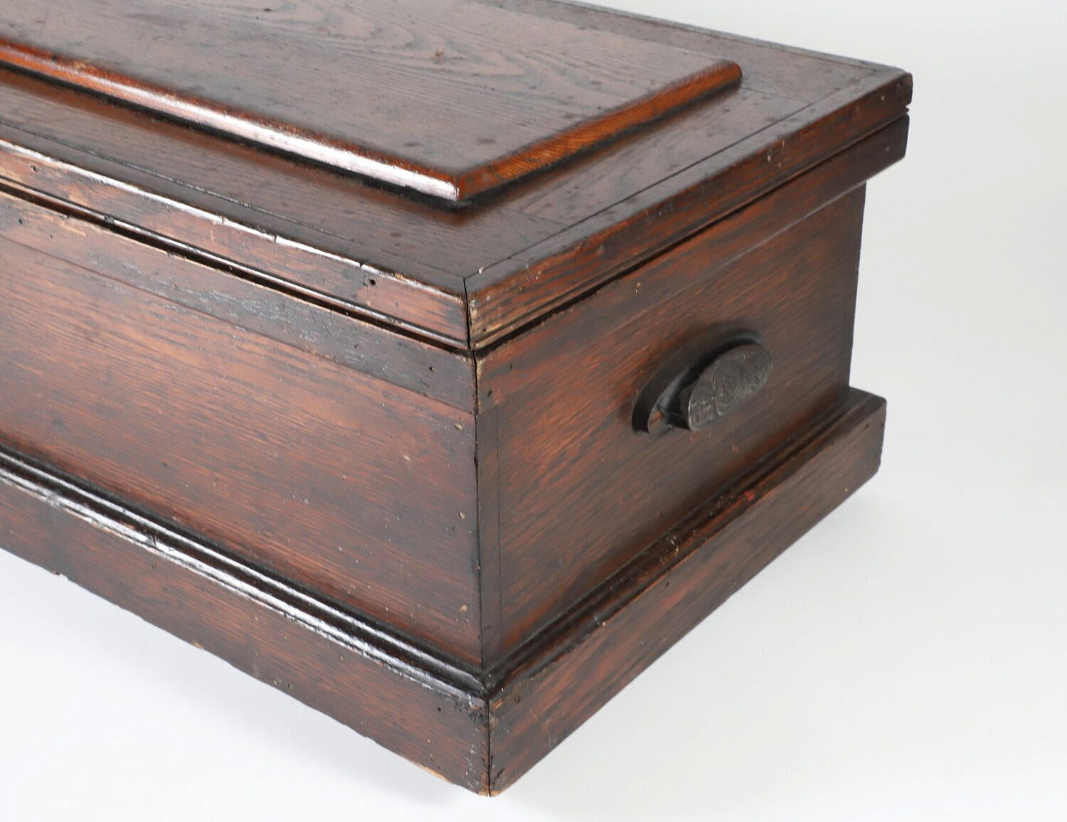 American Oak Tool Work Box, 19th Century, cast iron handles.