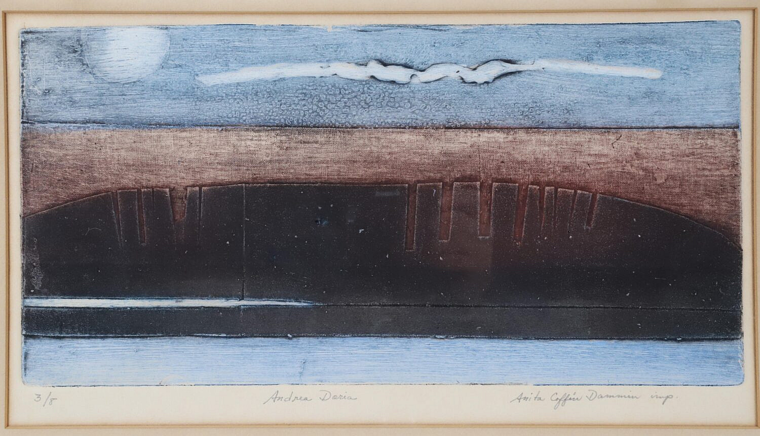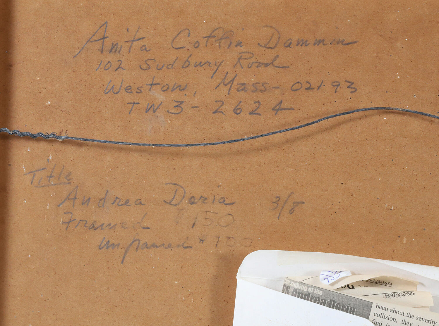 Anita Coffin Dammin (Nantucket 1920-2005) Limited Edition Silk Screen Print “Andrea Doria”, Edition #3/8, pencil signed, titled and numbered in the lower margin, matted and framed