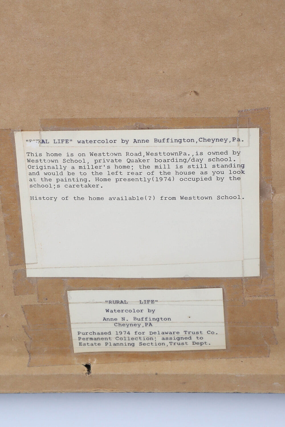 Anne Buffington Watercolor on Paper “Rural Life”, matted and framed