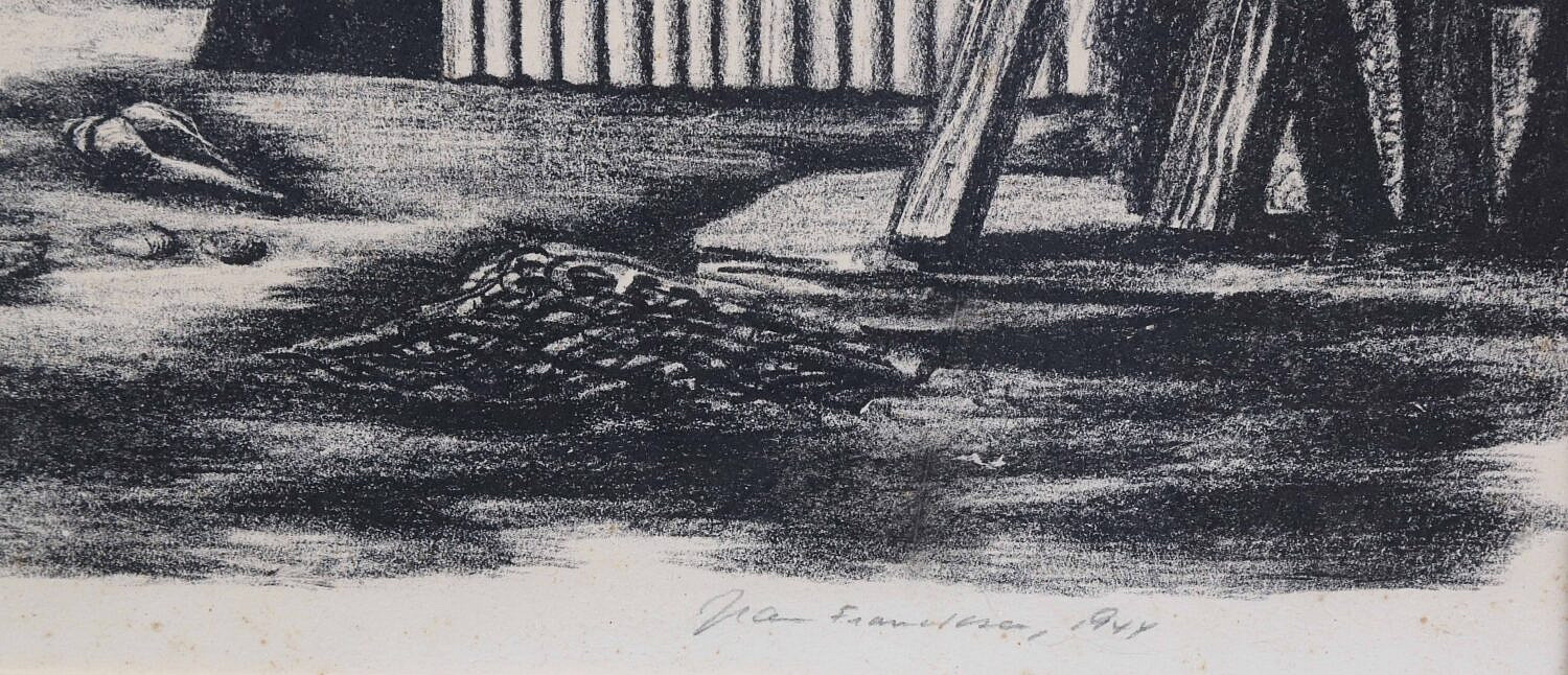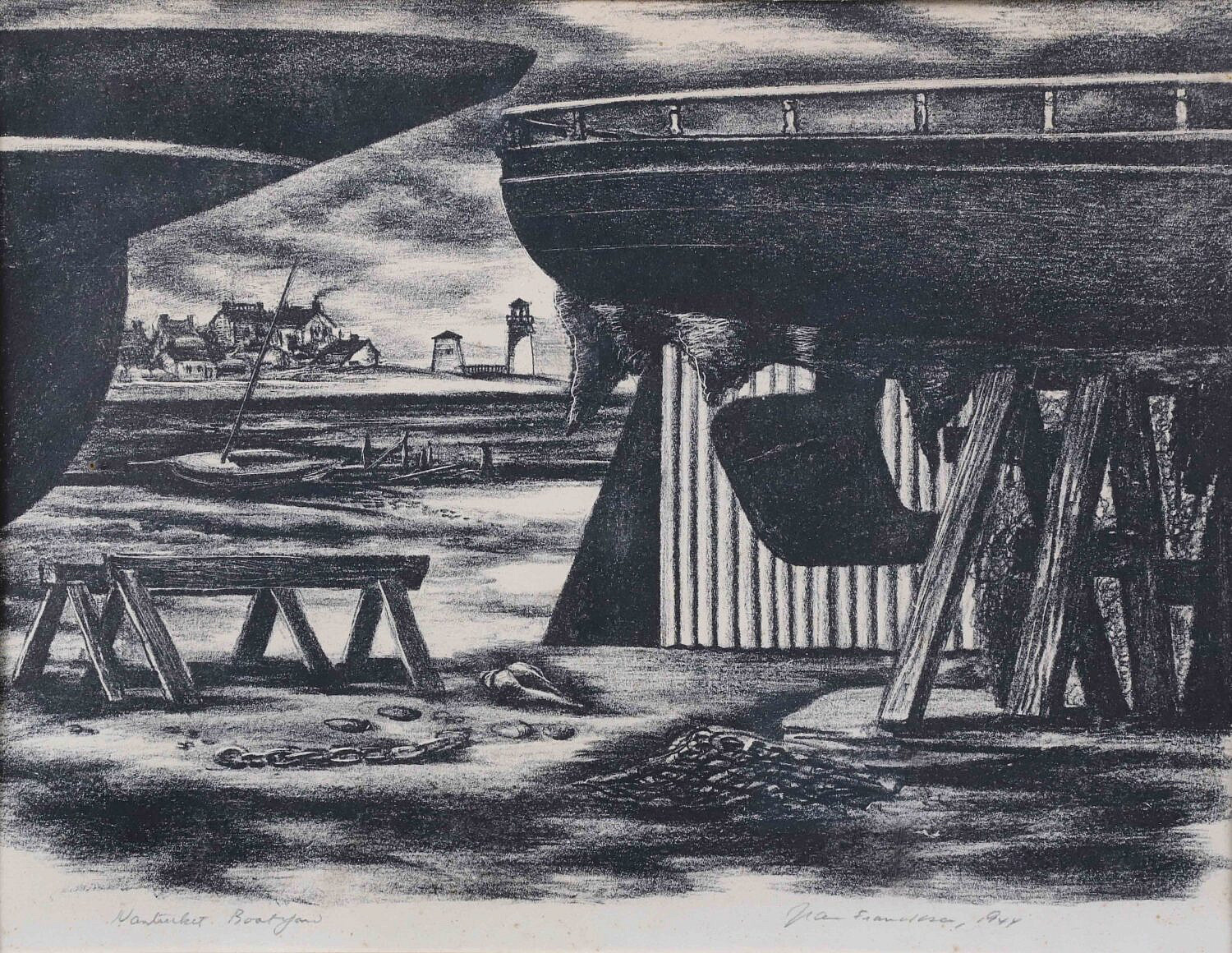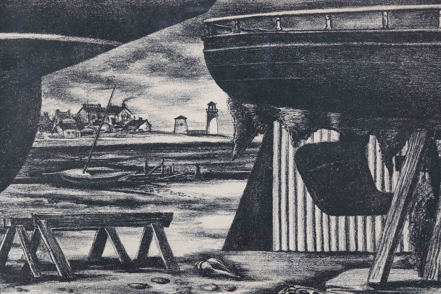 Artist’s Proof “Nantucket Boatyard”, signed and dated lower right 1944, matted and framed