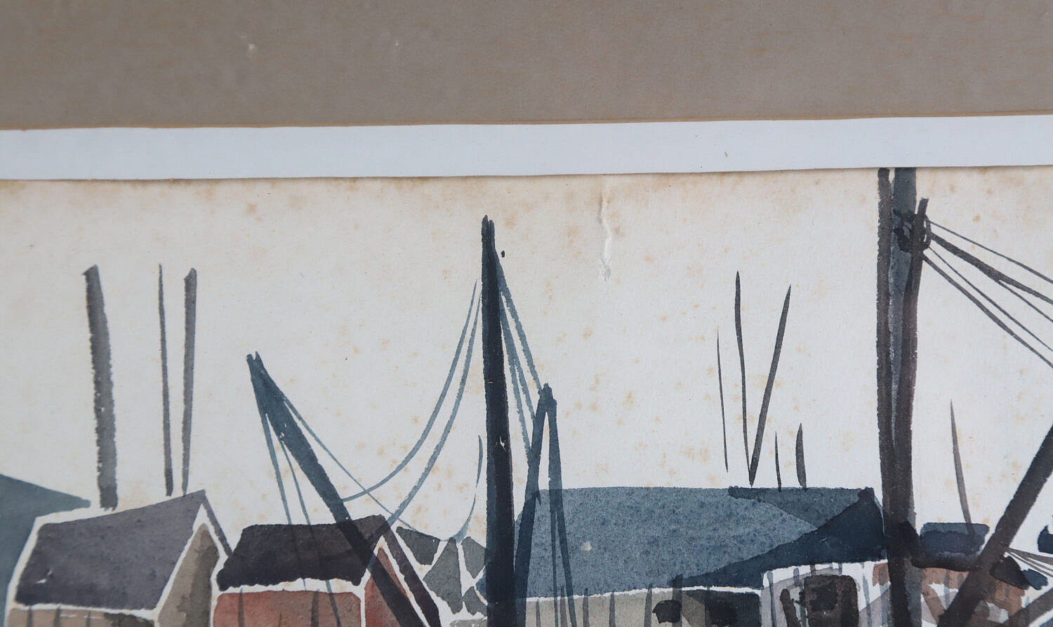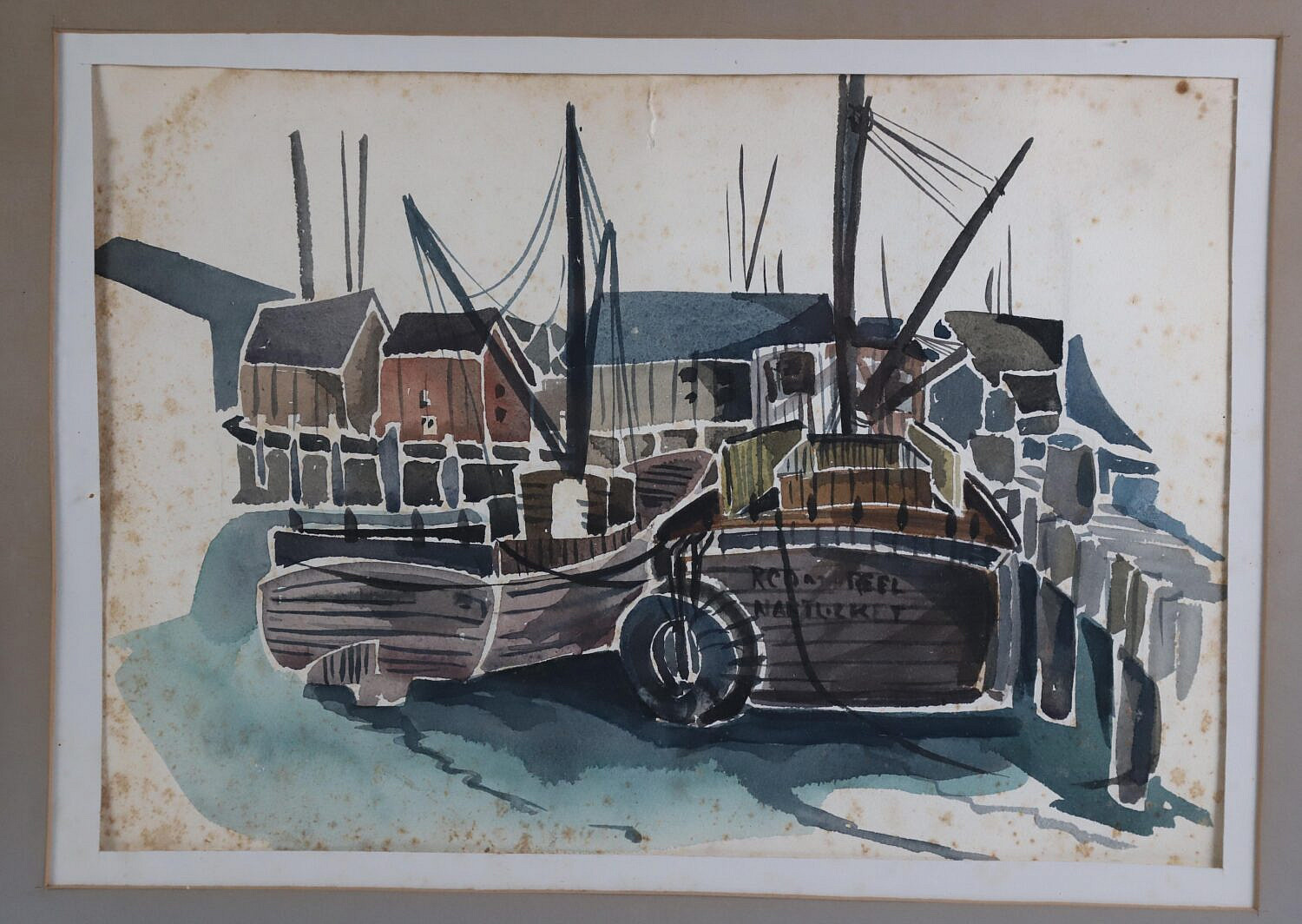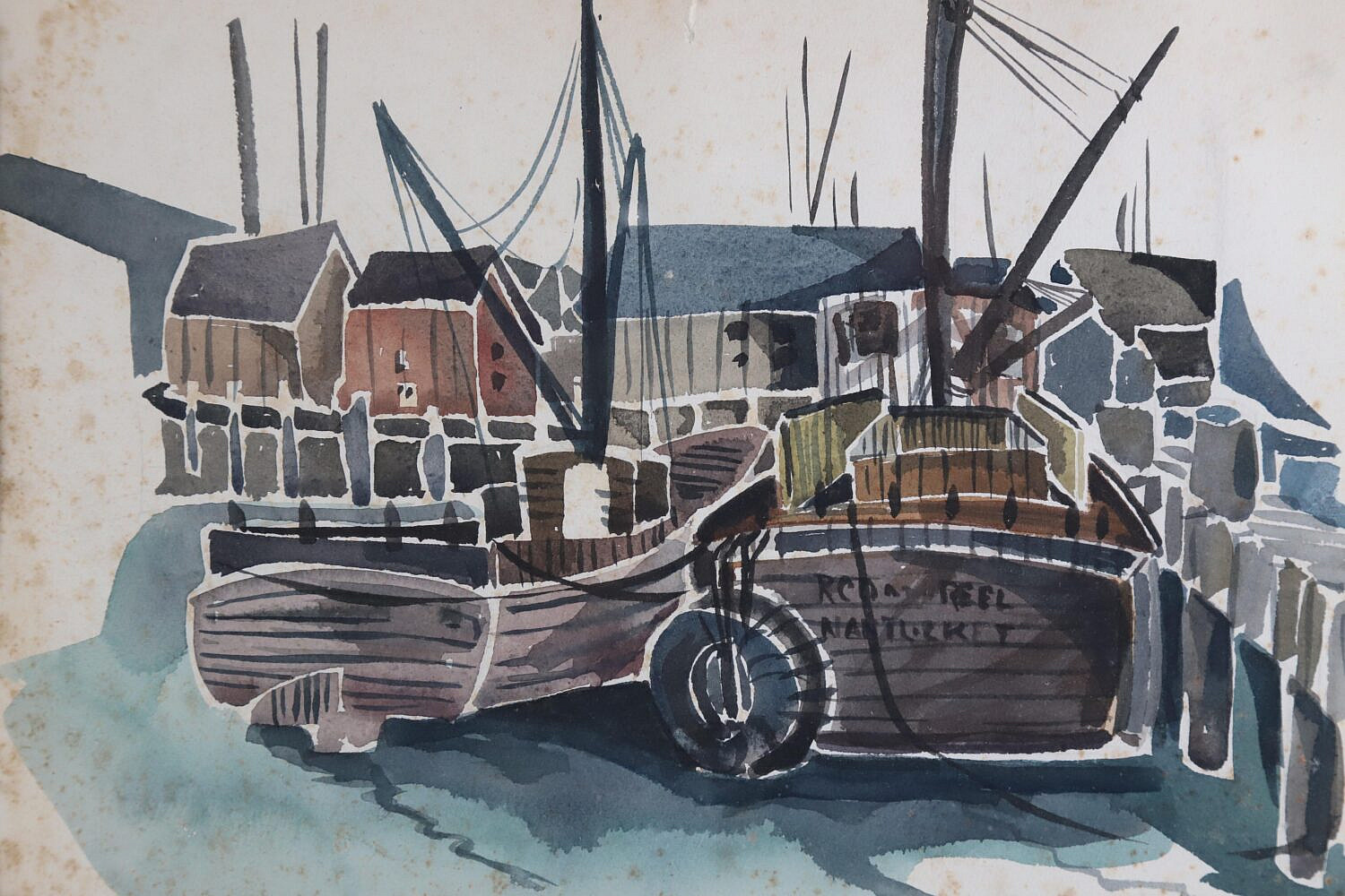 Attributed to Andrew Shunney Watercolor on Paper, “Nantucket Wharf”