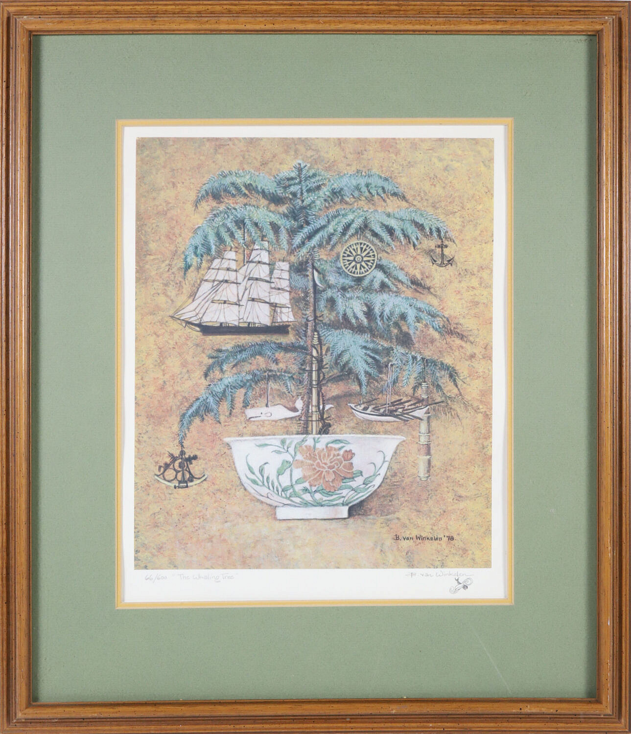 Barbara Van Winkelen (American 1919-2010) Limited Edition Lithograph “The Whaling Tree”, ED. # 66/600, pencil signed and titled, matted and framed