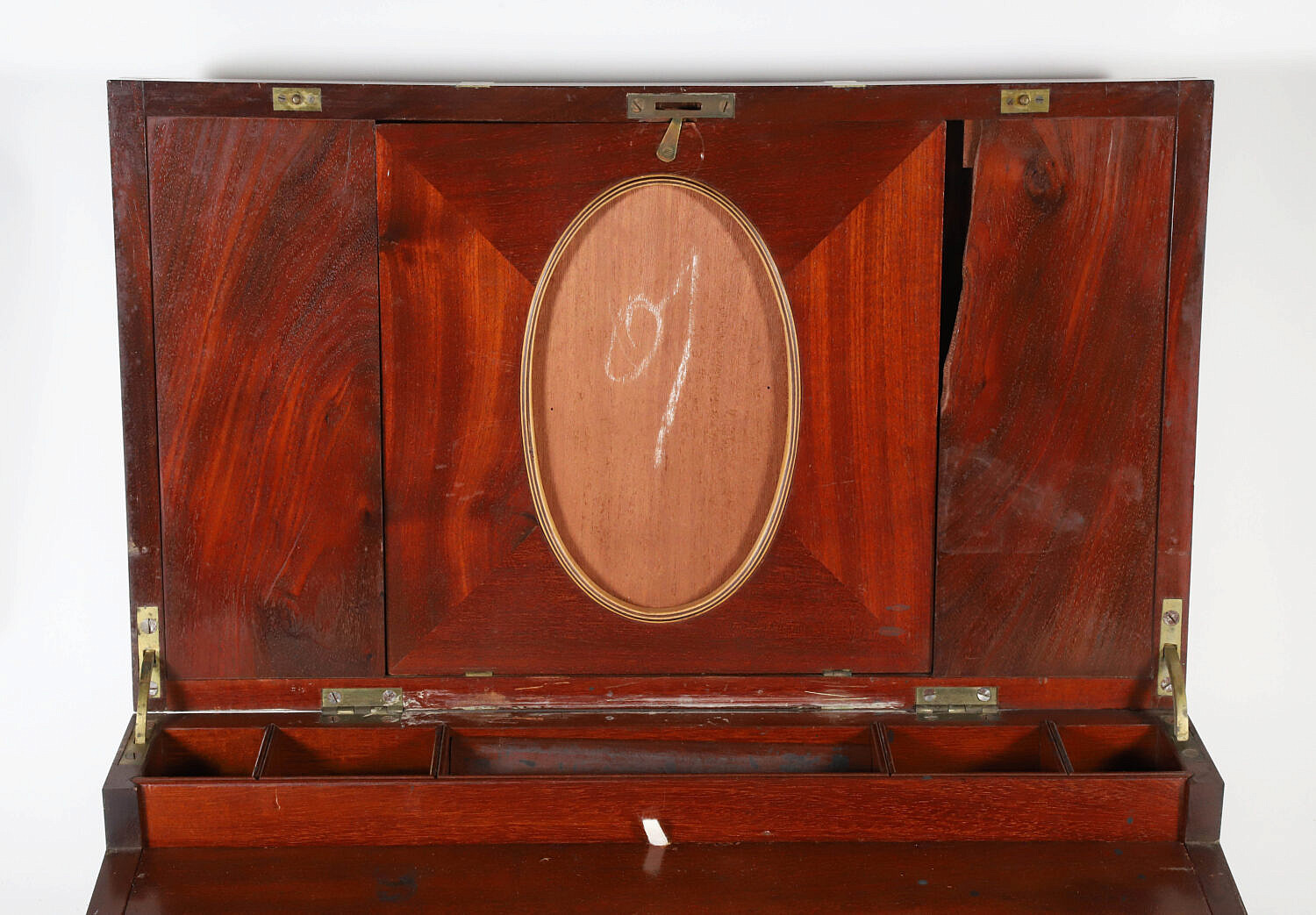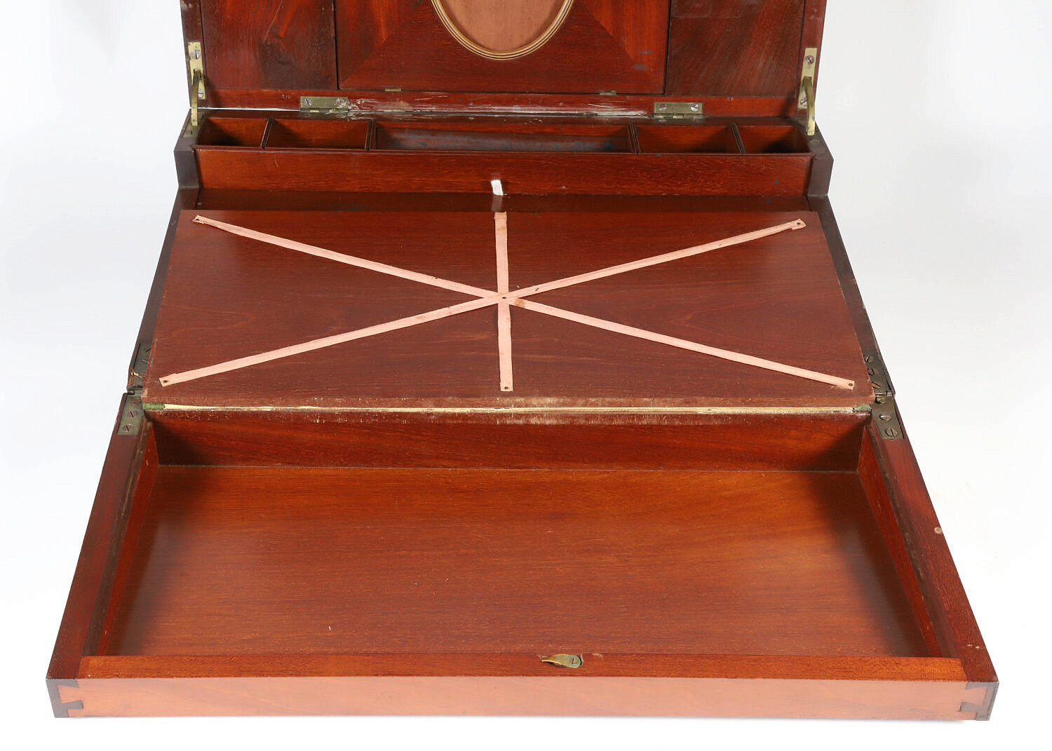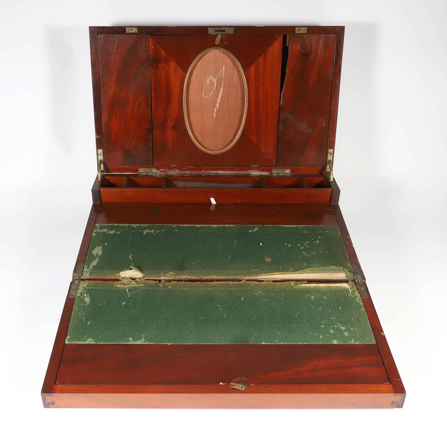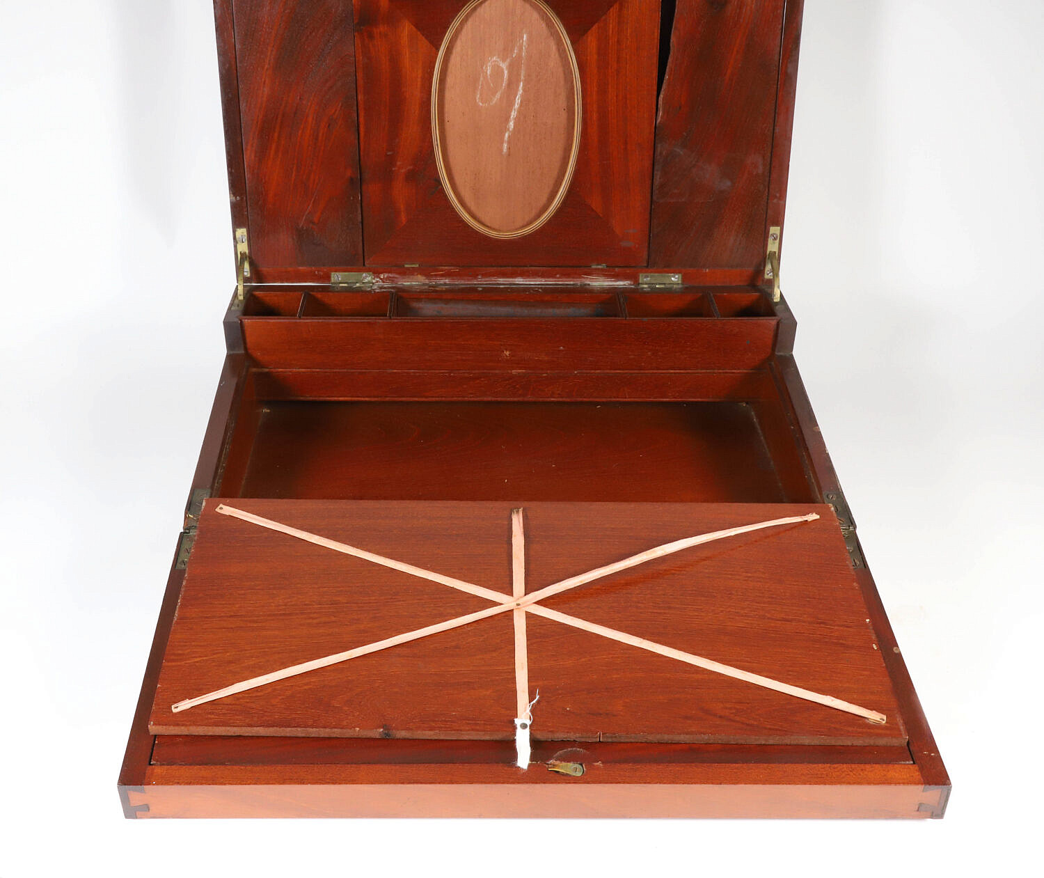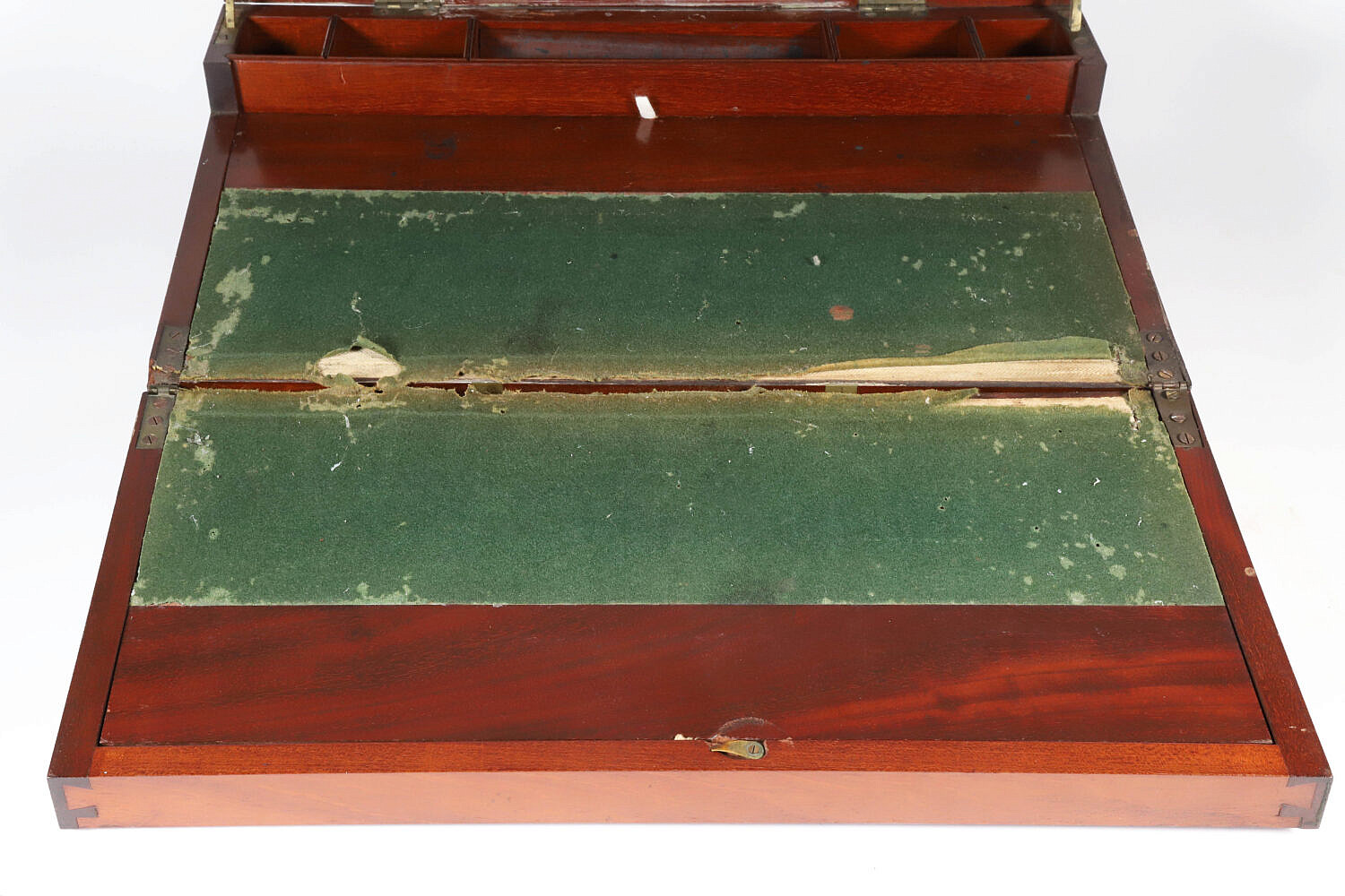 Brass Bound Dovetailed Mahogany Traveling Desk Box with Three Hidden Drawers, 19th Century