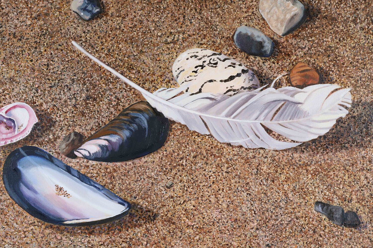 Carol Sims Acrylic On Canvas “Gull Feather”, 20th Century