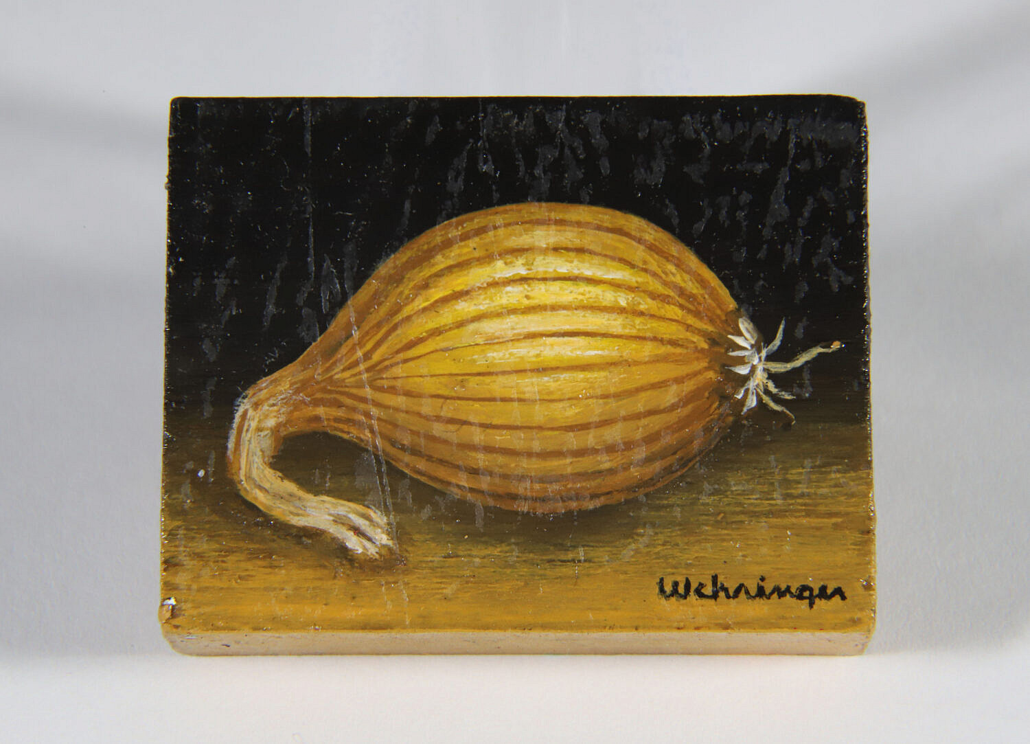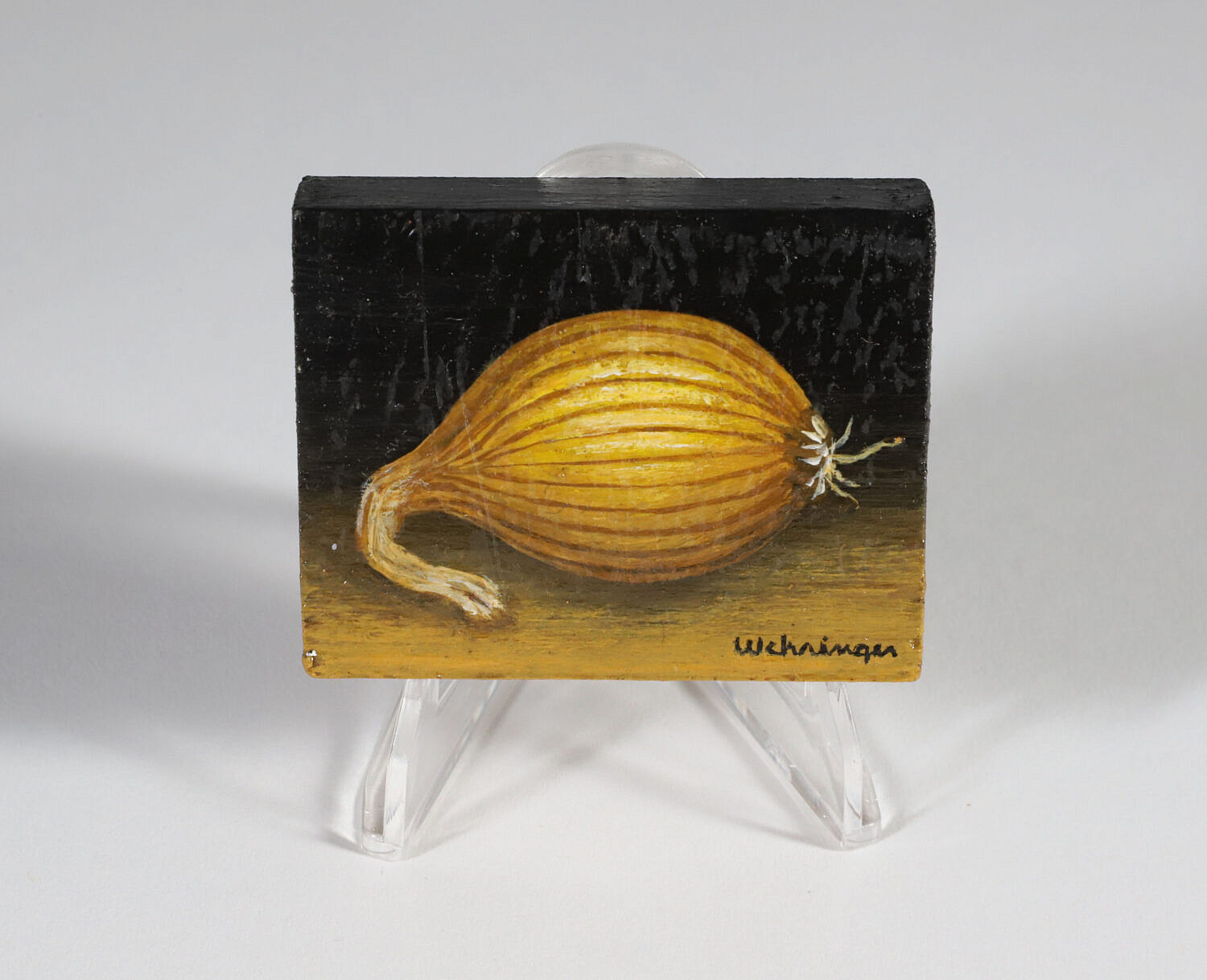 Charles Wehringer (American 20th Century) Miniature Still Life Oil on Board “Yellow Onion”, signed lower right Wehringer.