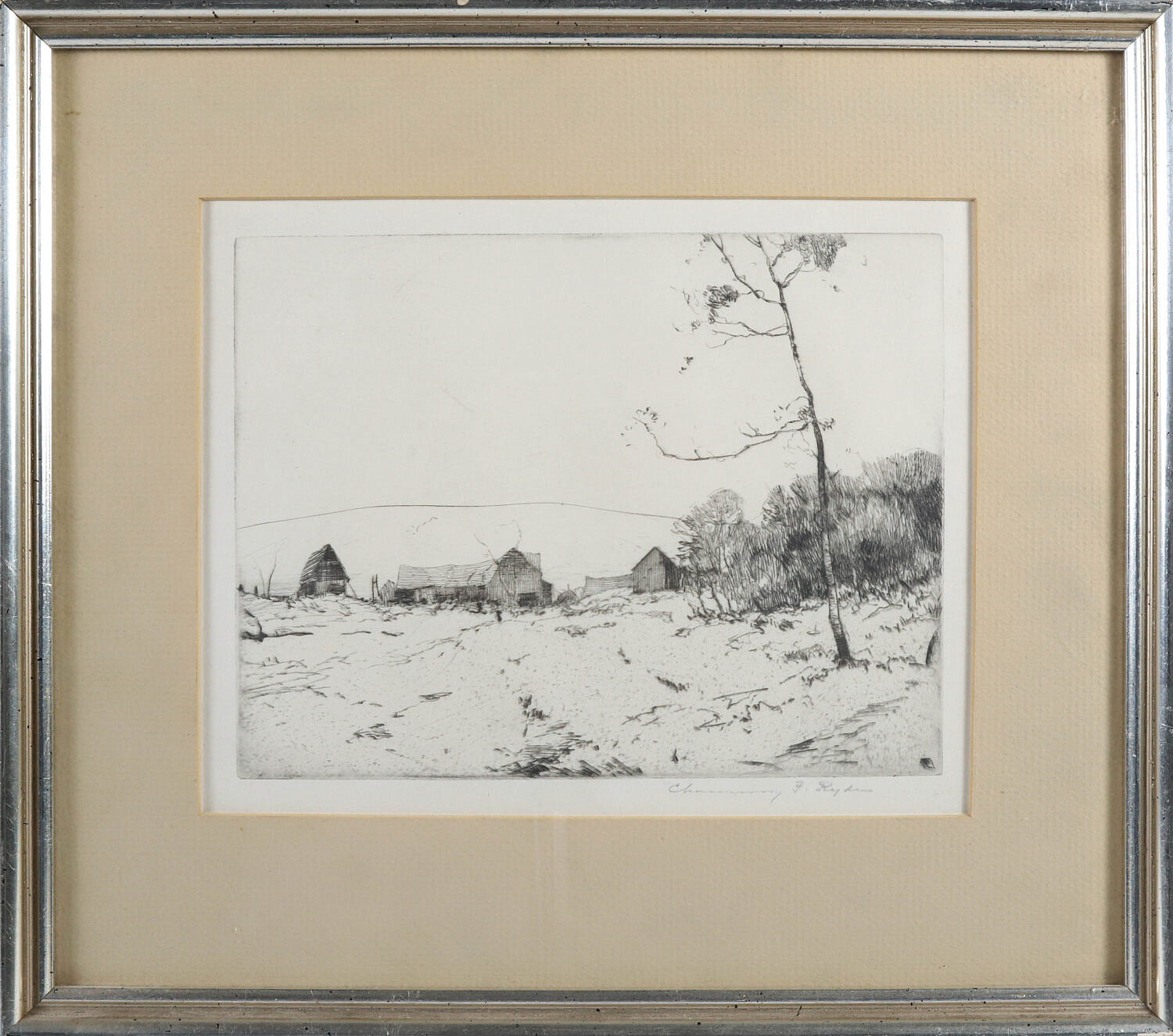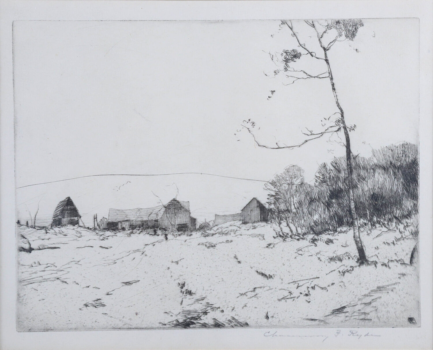 Chauncey F. Ryder (American 1868-1949) Etching “Old Farmyard”, signed in pencil lower right, matted and framed