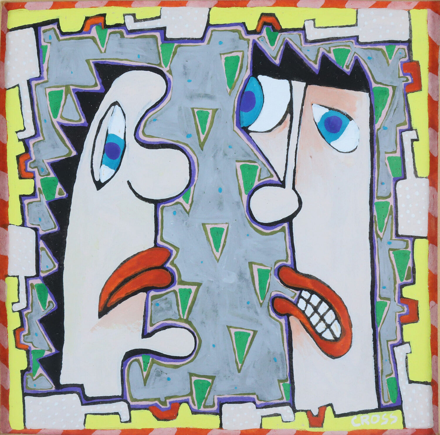 Contemporary Portrait of a Man and Woman, matted within hand painted frame