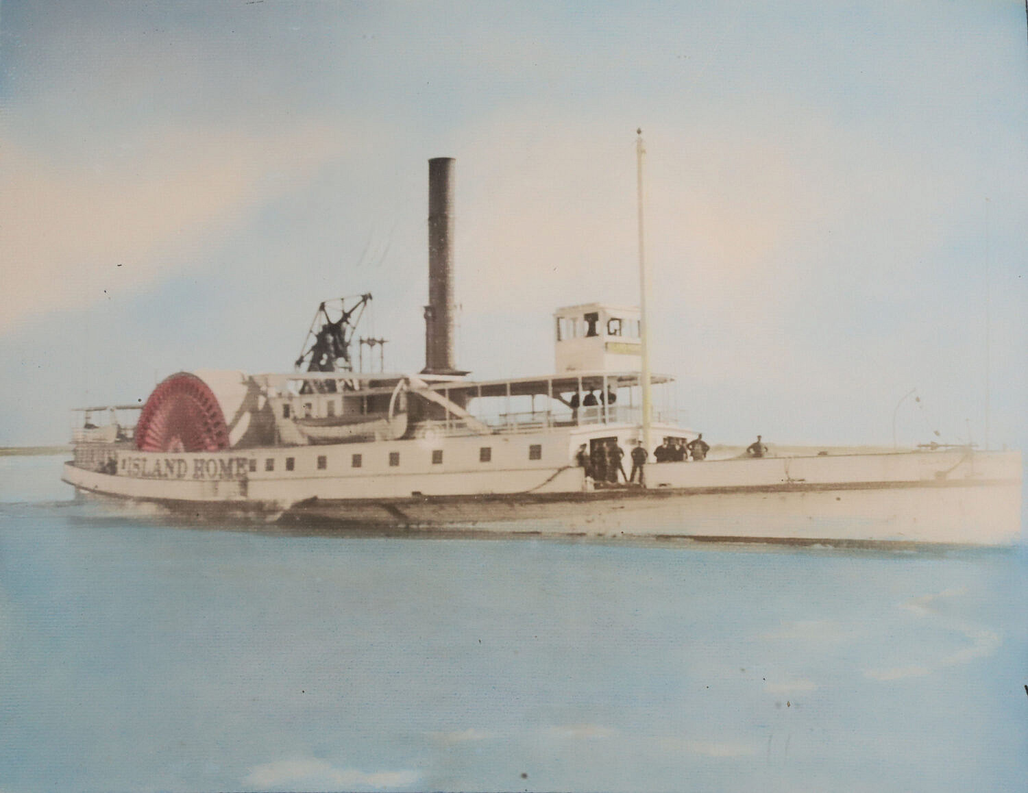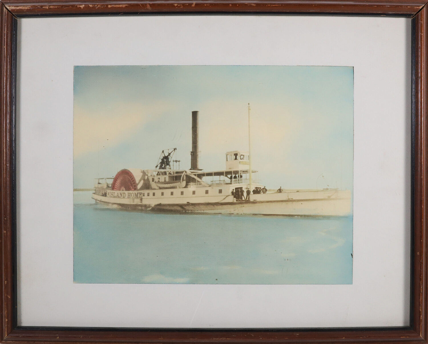 Early James Barker Hand Tinted Photograph of the Side Wheeler “Island Home”, matted and framed
