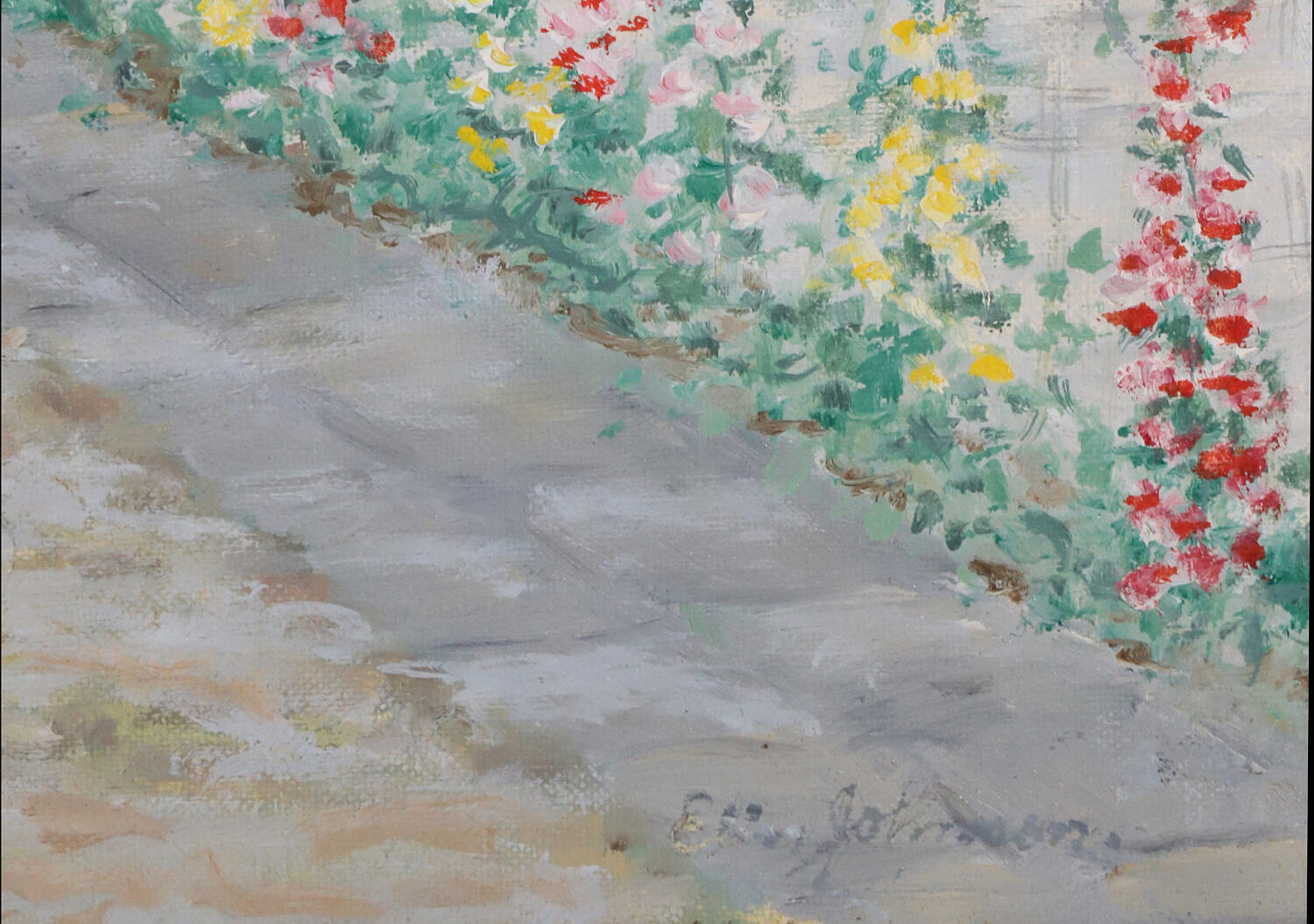 Elin Johnson Vintage Oil On Board “Stone Alley Nantucket”, signed lower right Elin Johnson, framed