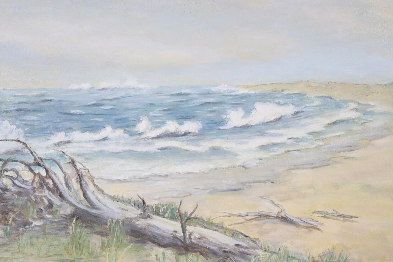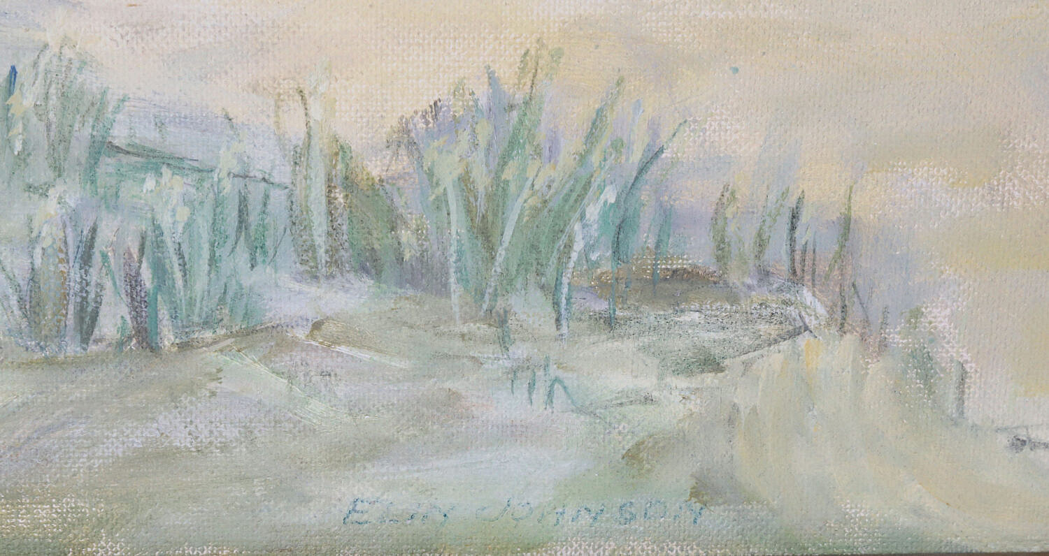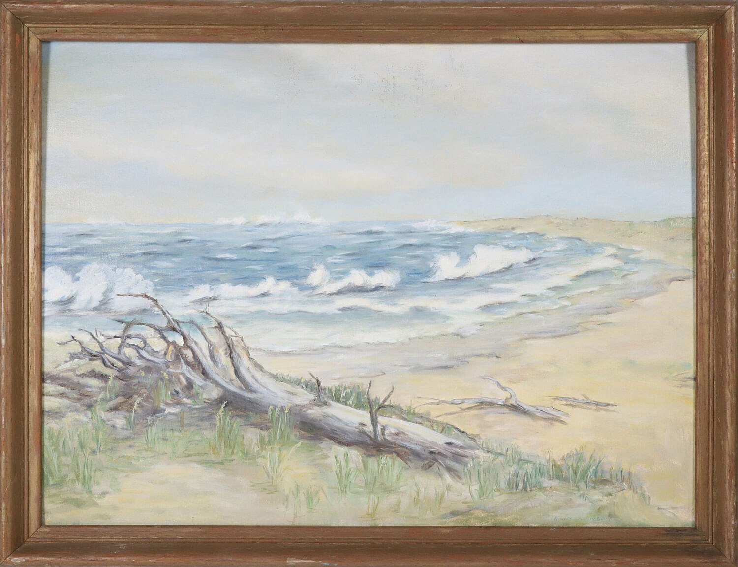 Elin Johnson Vintage Oil on Board “Surfside Driftwood”, signed lower right Elin Johnson, in molded wood frame