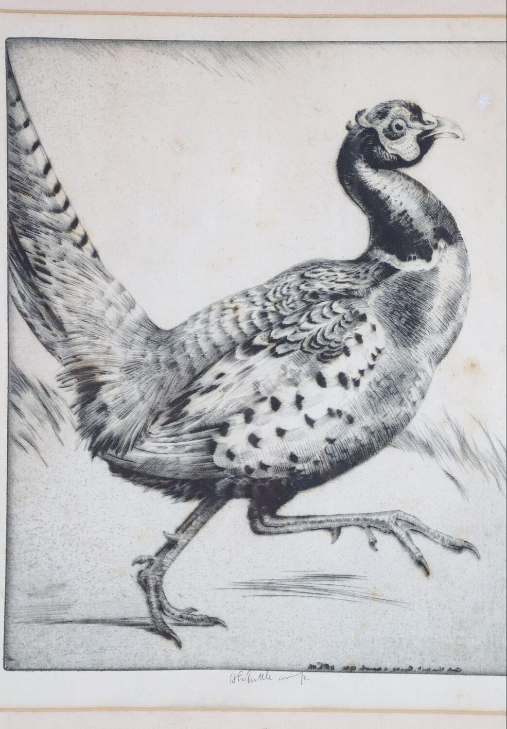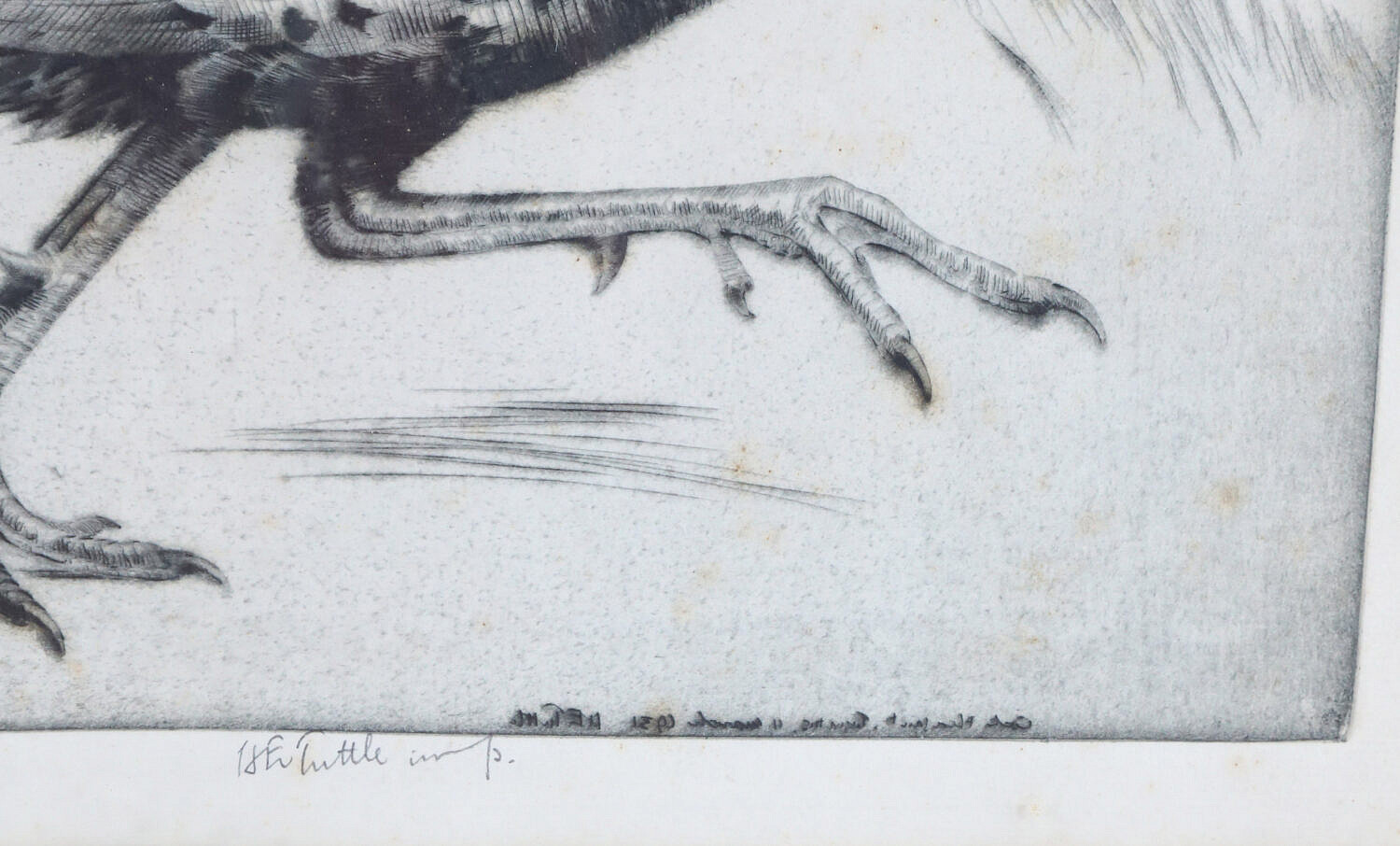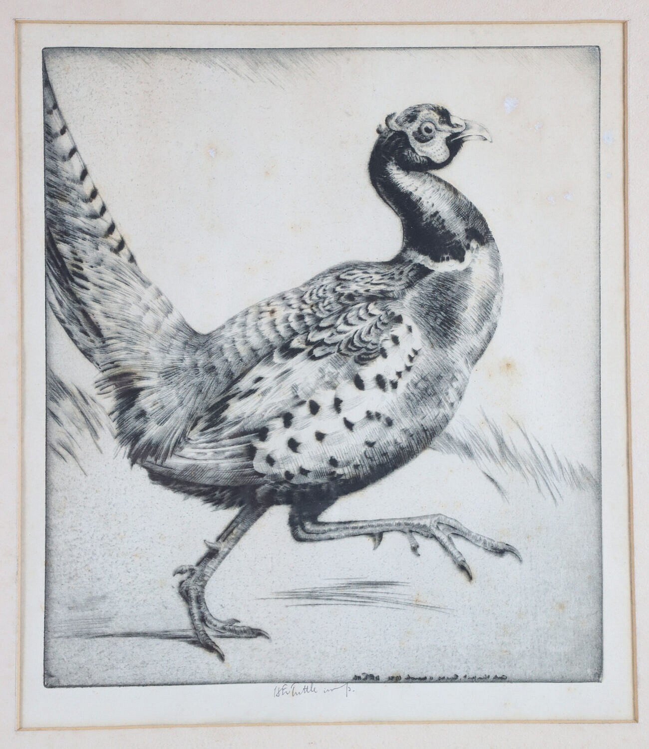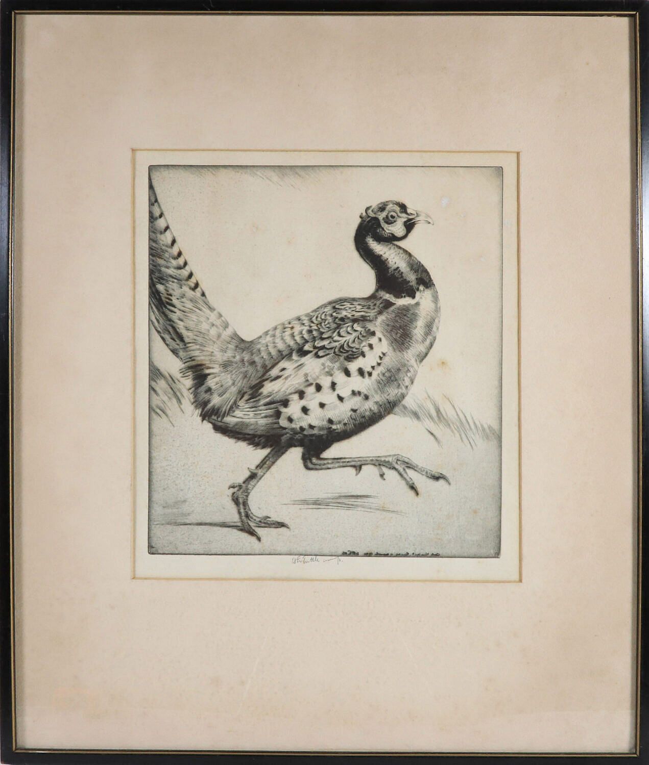 Emerson Tuttle Dry Point Etching “Running Pheasant”, circa 1932, no. 120, signed lower center, E Tuttle, matted and framed