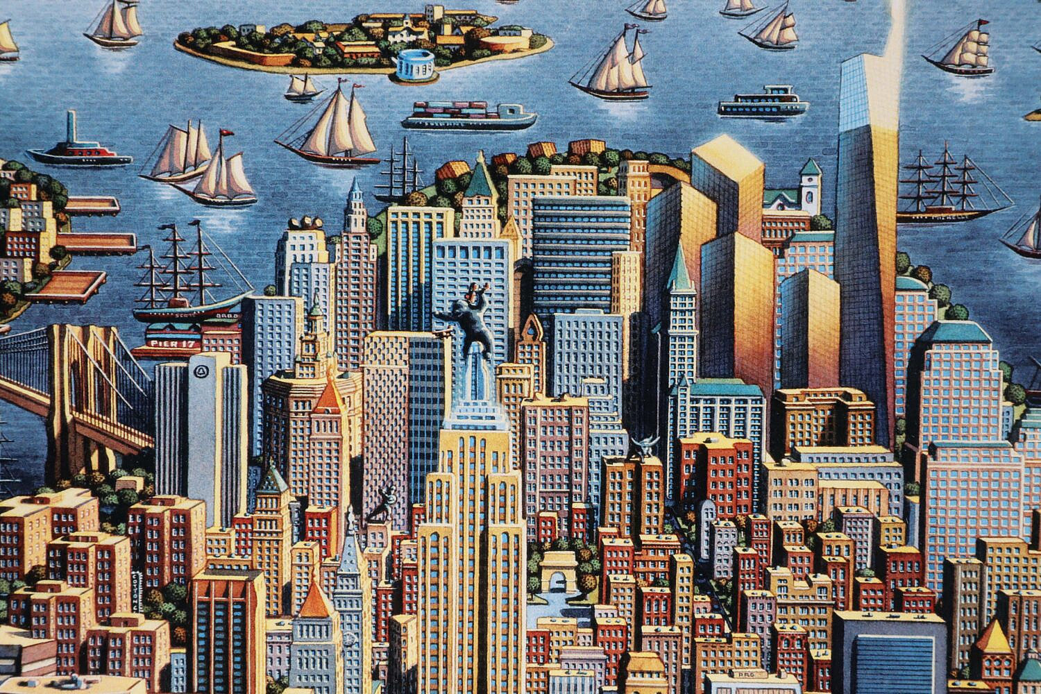 Eric Dowdle Print “Whimsical Aerial View of Manhattan”