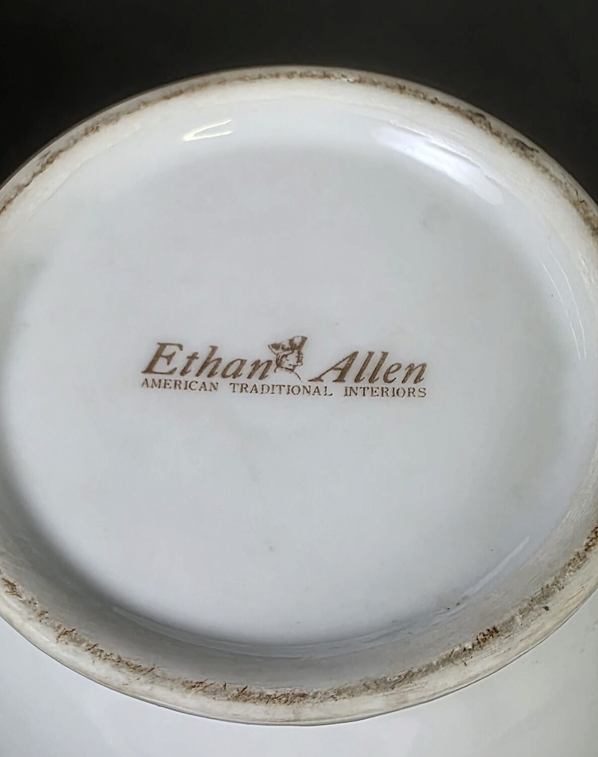 Ethan Allen Porcelain Covered Urn Vase, with eagle decoration.