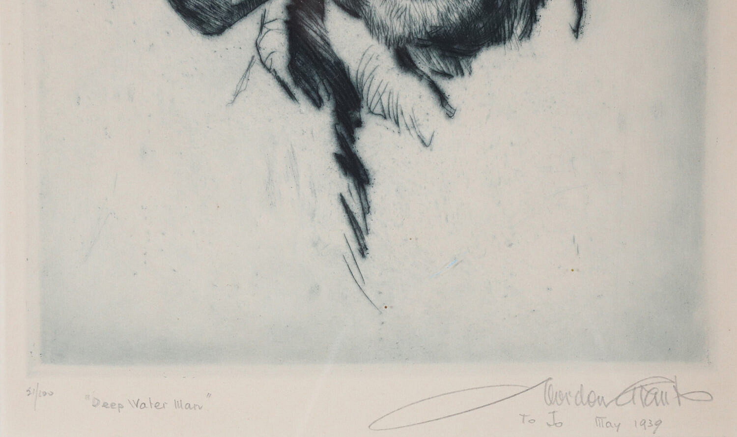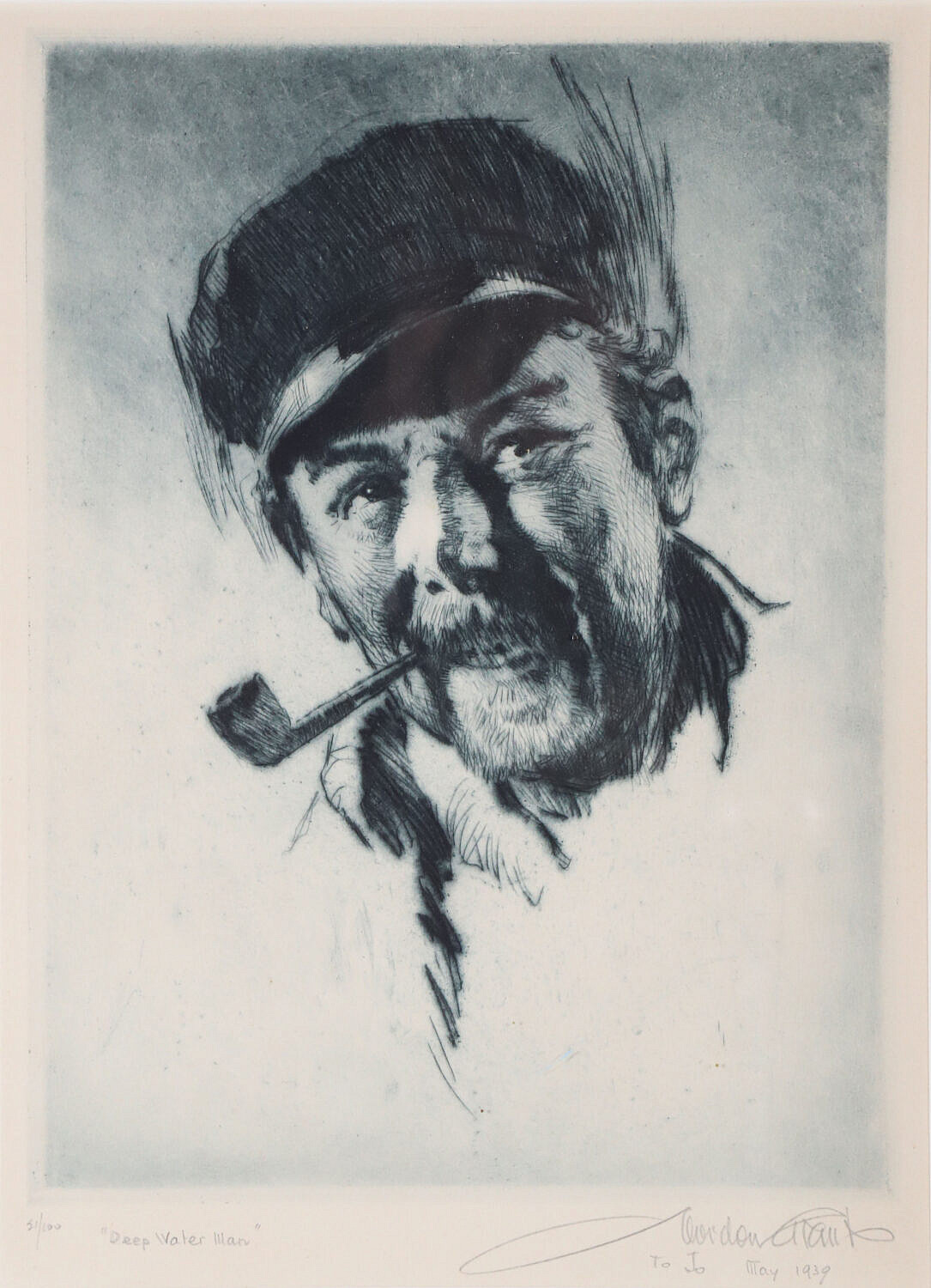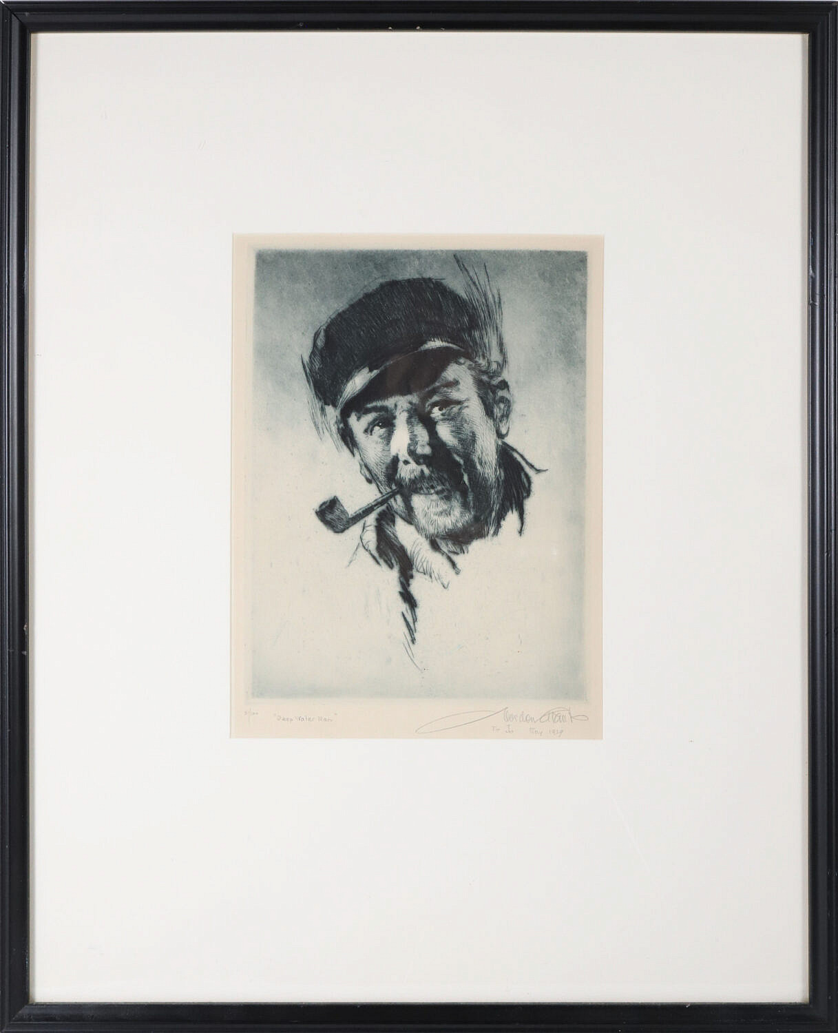 Gordon Hope Grant Limited Edition Black and White Lithograph “Deep Water Man” Consign Now DeptFine Arts, Maritime ArtsSize9.25 in. x 6.75 in. Framed 21 in. x 17 in. Gordon Hope Grant (1875-1962) Limited Edition Black and White Lithograph “Deep Water Man”, pencil titled lower left edition 21/100, and signed lower right Gordon Grant May 1939, matted and framed 9.25 in. x 6.75 in. Framed 21 in. x 17 in. Please note that this auction has ended. Click here for an overview of this auction.
