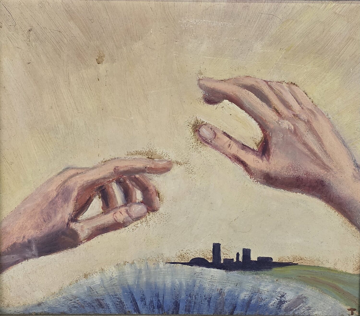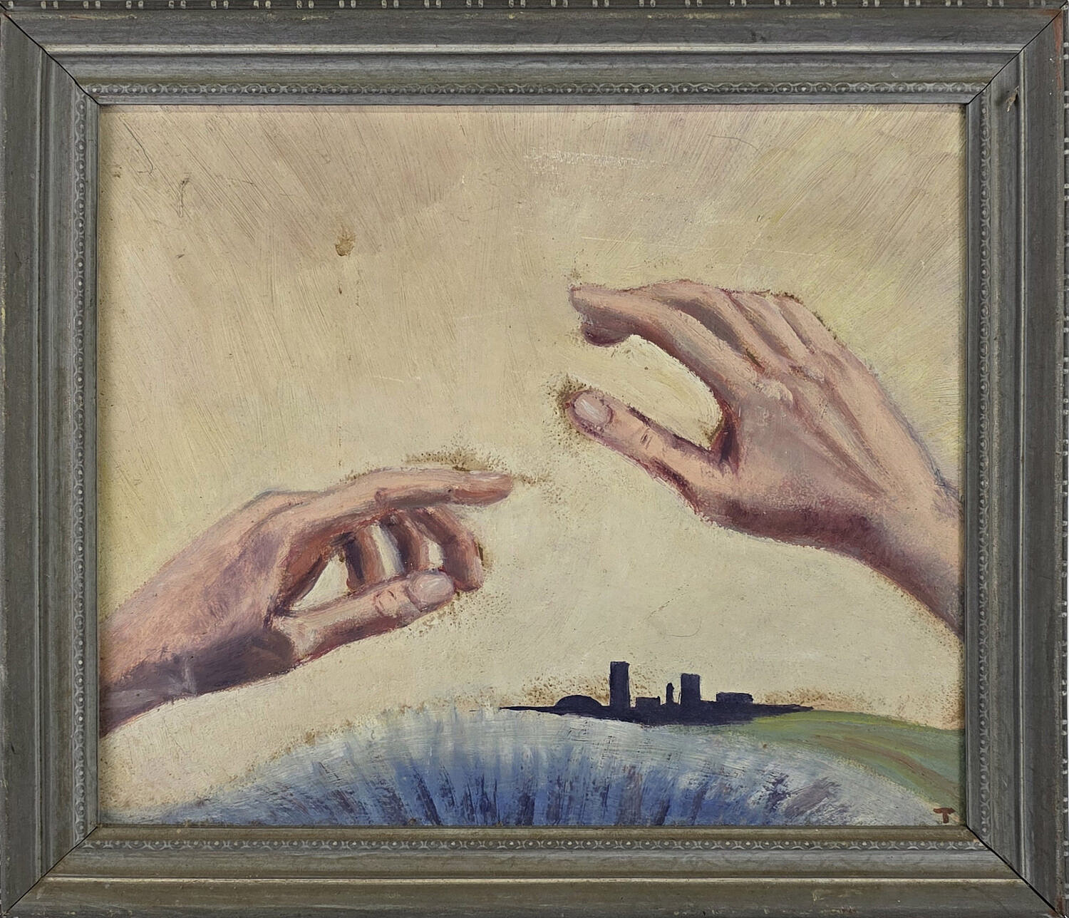 Grace Tuttle (Nantucket) Oil on Artist Board City Scape, 20th century, initialed lower right.