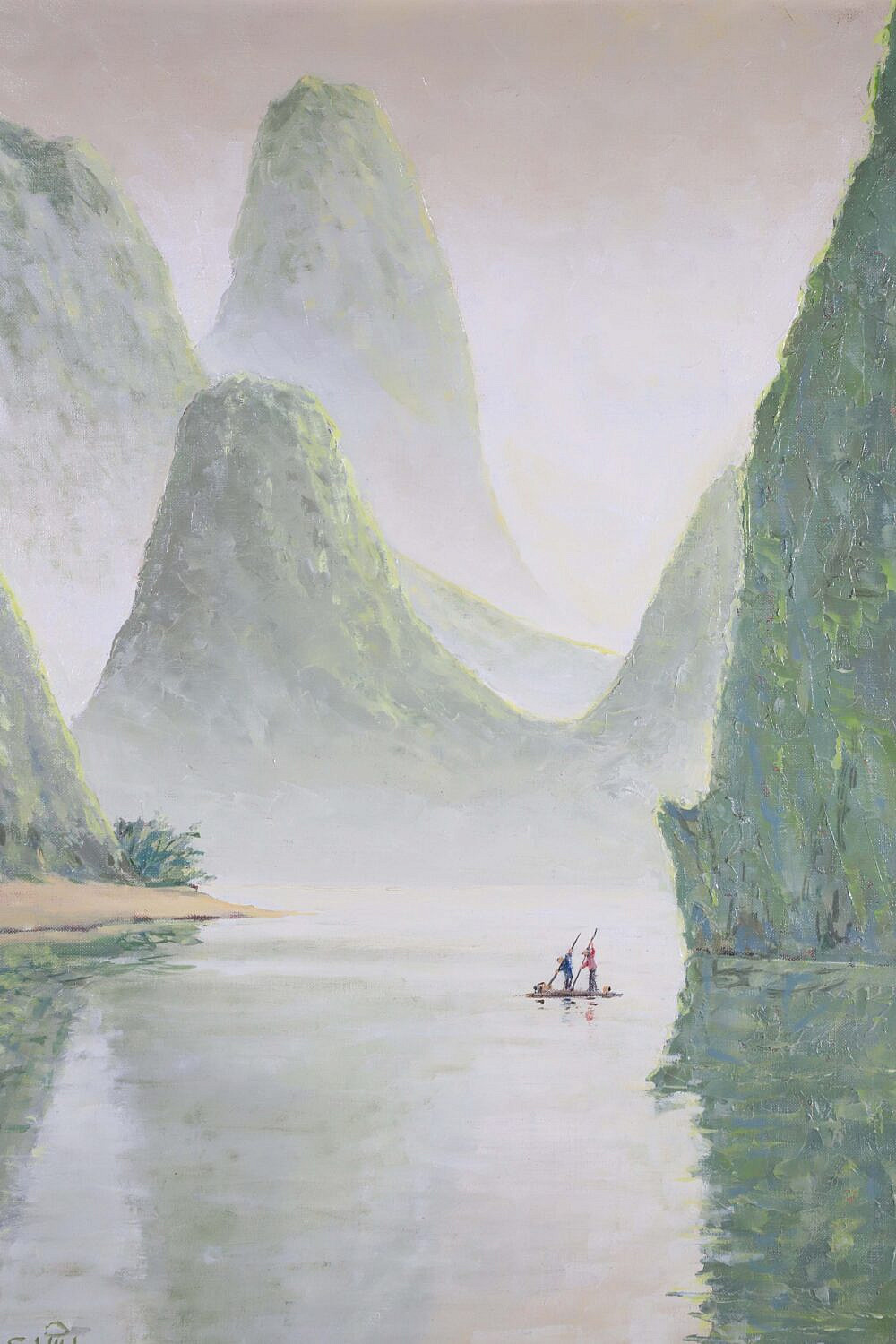 G.S Hill (American b. 1944) Oil on Linen “Li River II China”, signed lower left “G.S. Hill 2011” in flat gilt frame