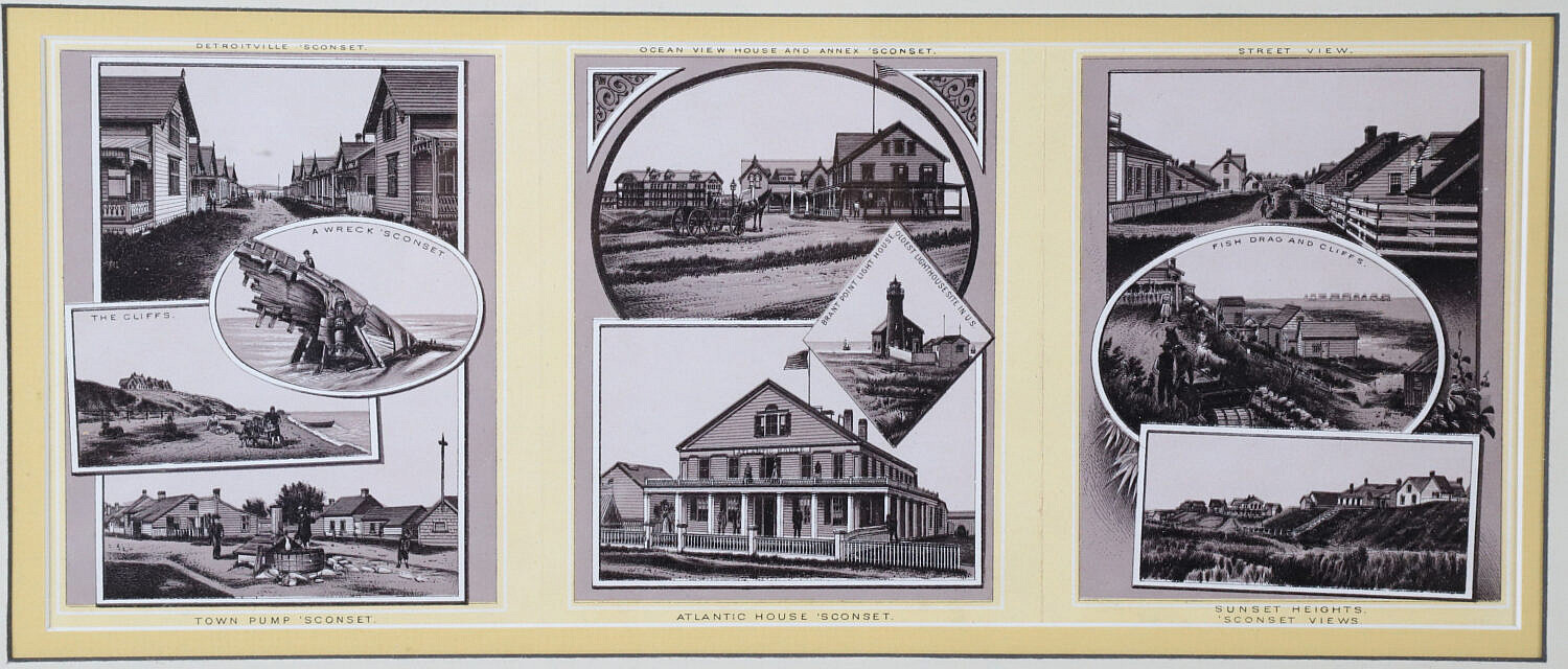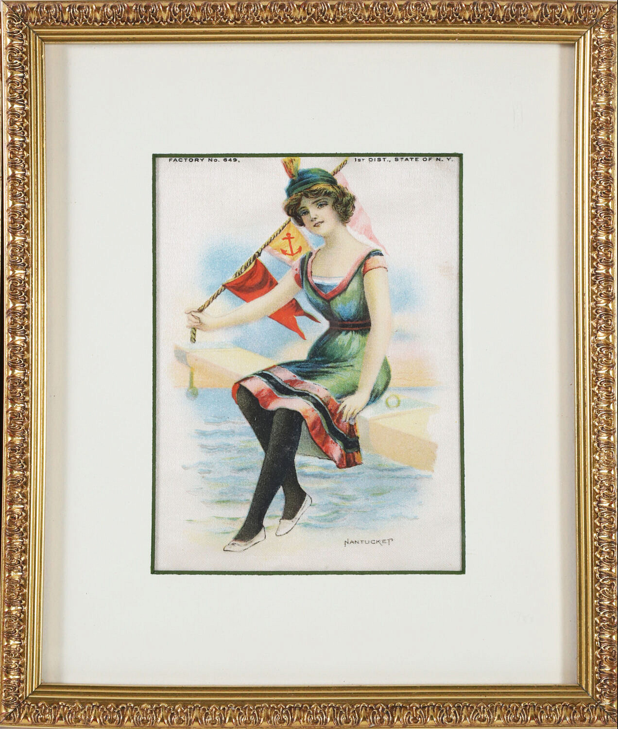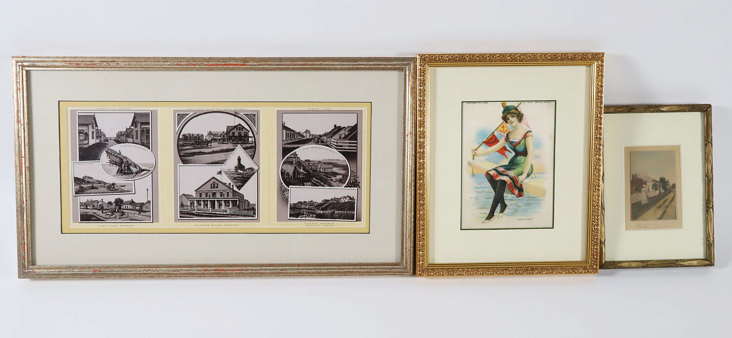 Group of 3 Framed Pieces Of Nantucket Ephemera, comprising Nantucket bathing beauty tobacco silk, Davidson colored photo and Nantucket Views of Siasconset