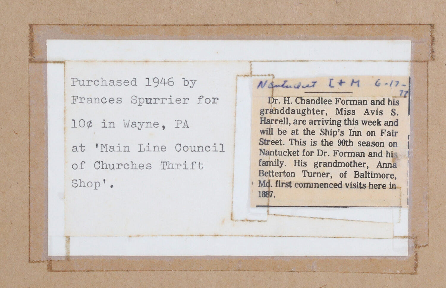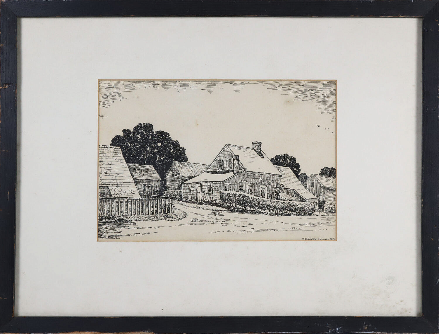 H. Chandlee Forman Etching “Broadway, Sconset”, circa 1940, signed H. Chandlee Forman 1940 lower right, matted and framed