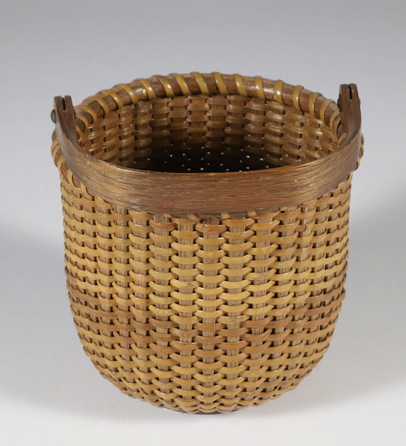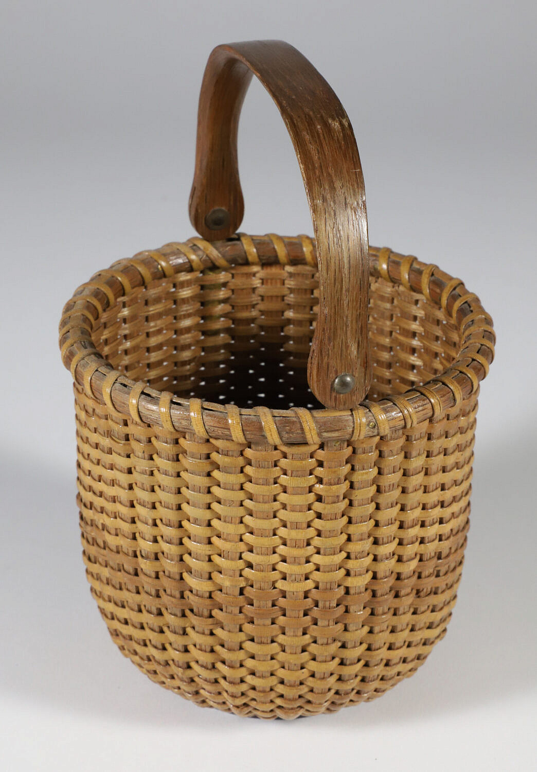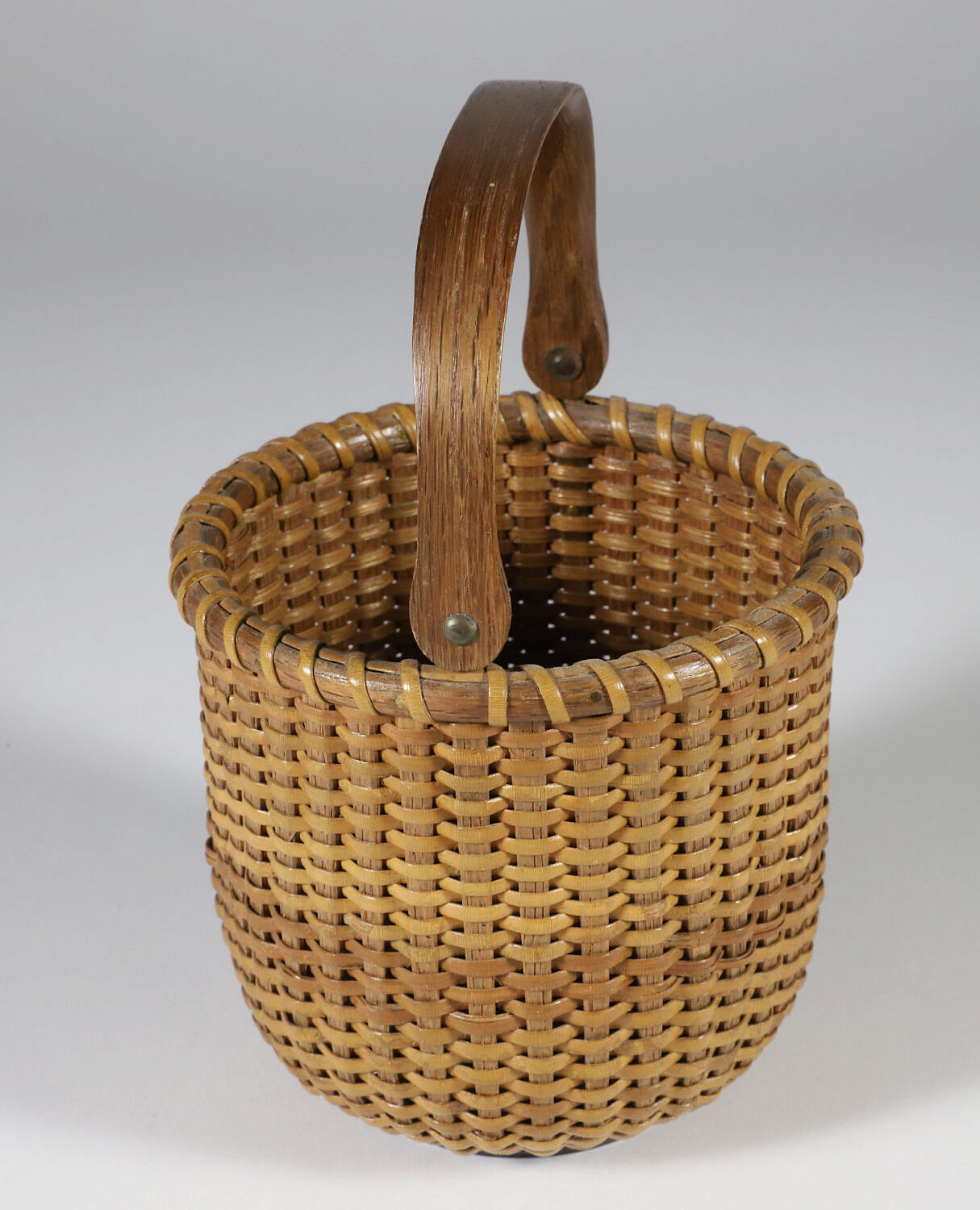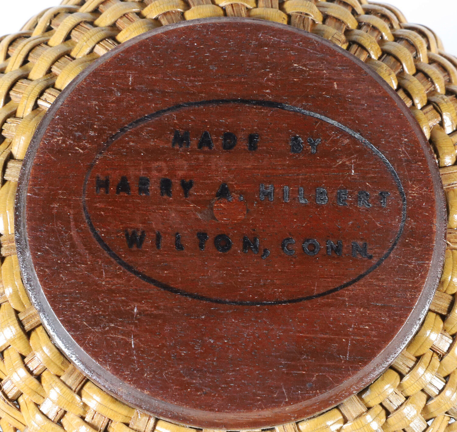 Harry Hilbert (1917-2010) Open Round Swing Handle Nantucket Basket, signed underneath: Made by Harry A. Hilbert Wilton, Conn.