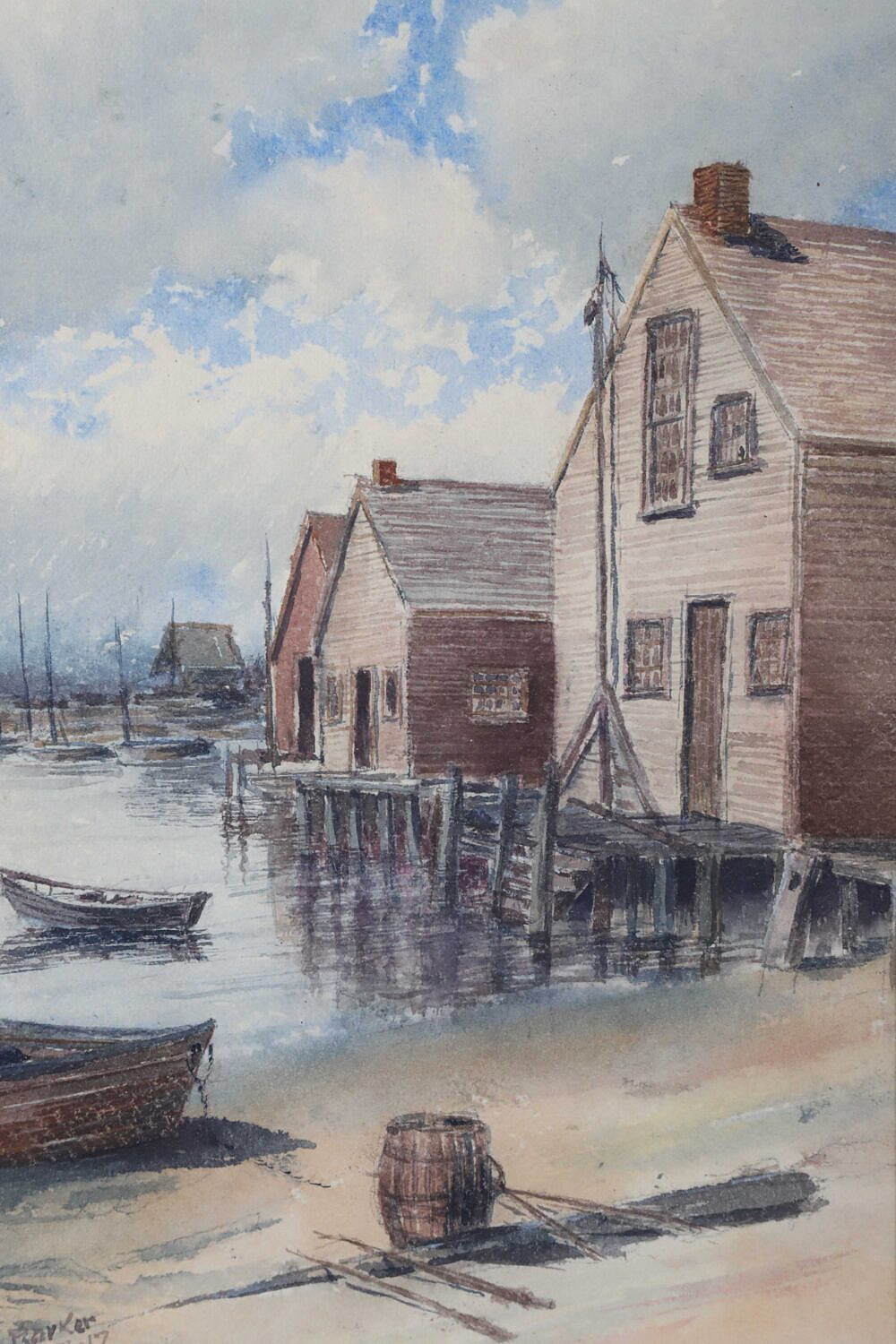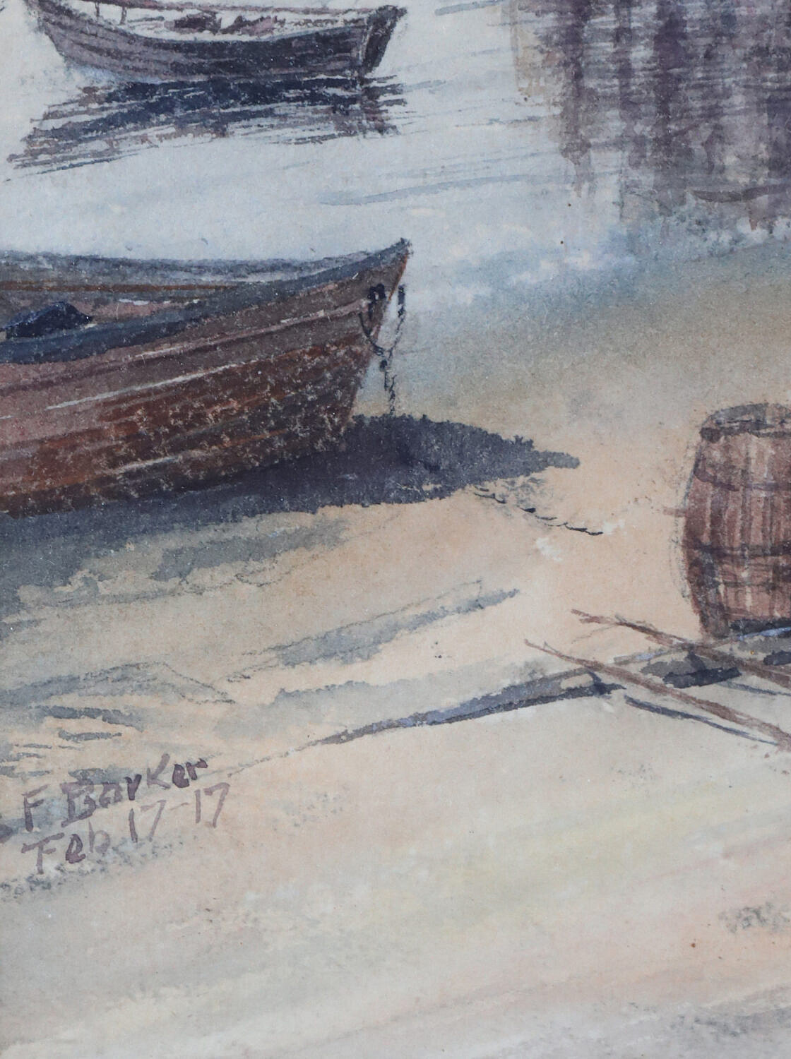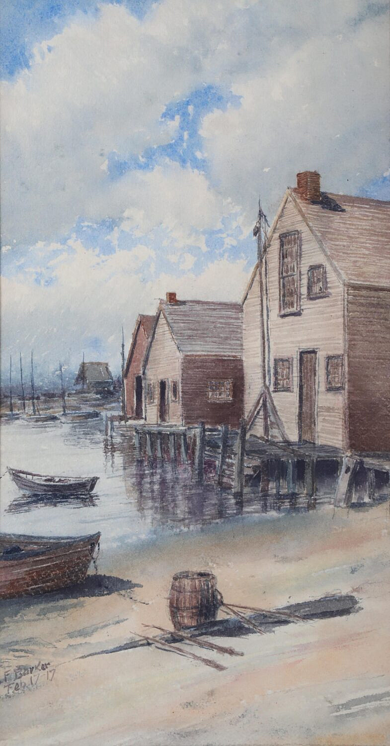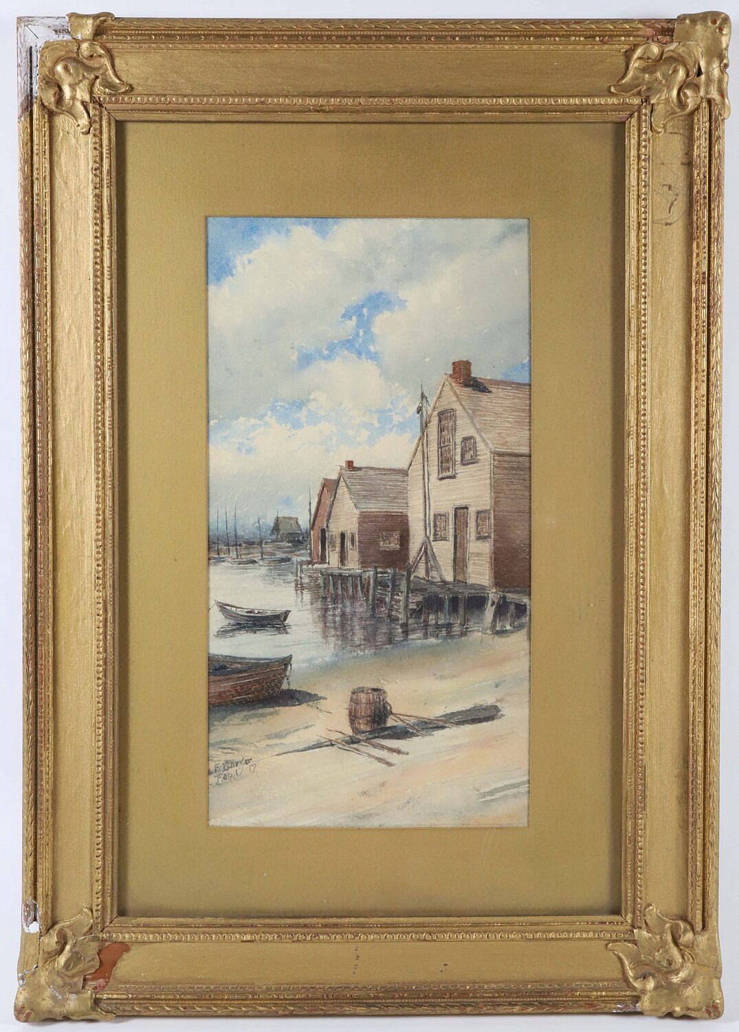 James Francis Barker (American 1871-1950) Watercolor On Paper “North Wharf, signed lower left F. Barker, Feb. 17 ’17 in as found gilt frame