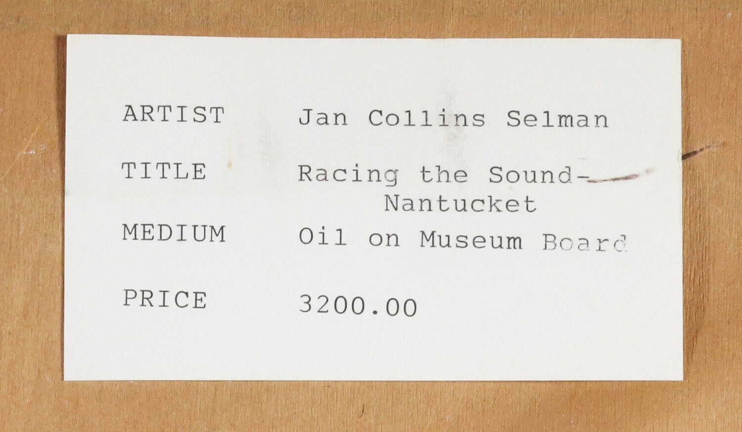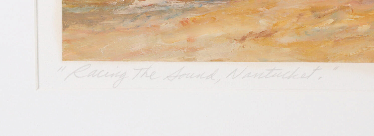 Jan Collins Selman (b. 1945) Oil on Board “Racing the Sound Nantucket”, signed and dated in pencil lower right Jan Collins Selman ’89