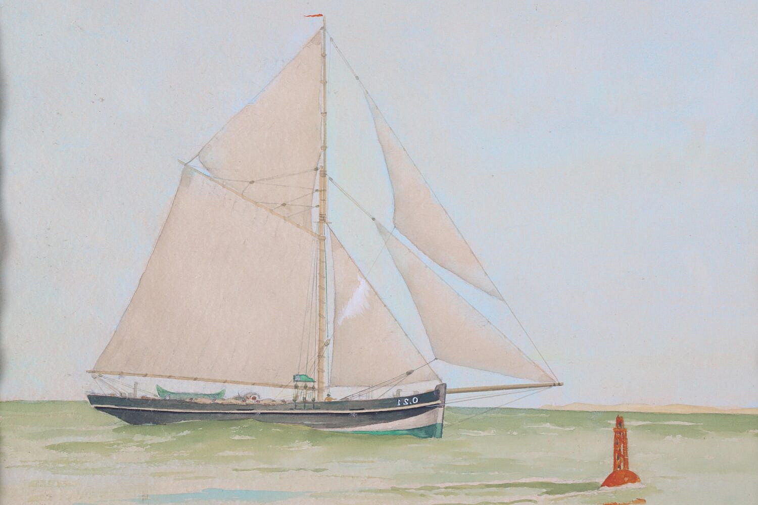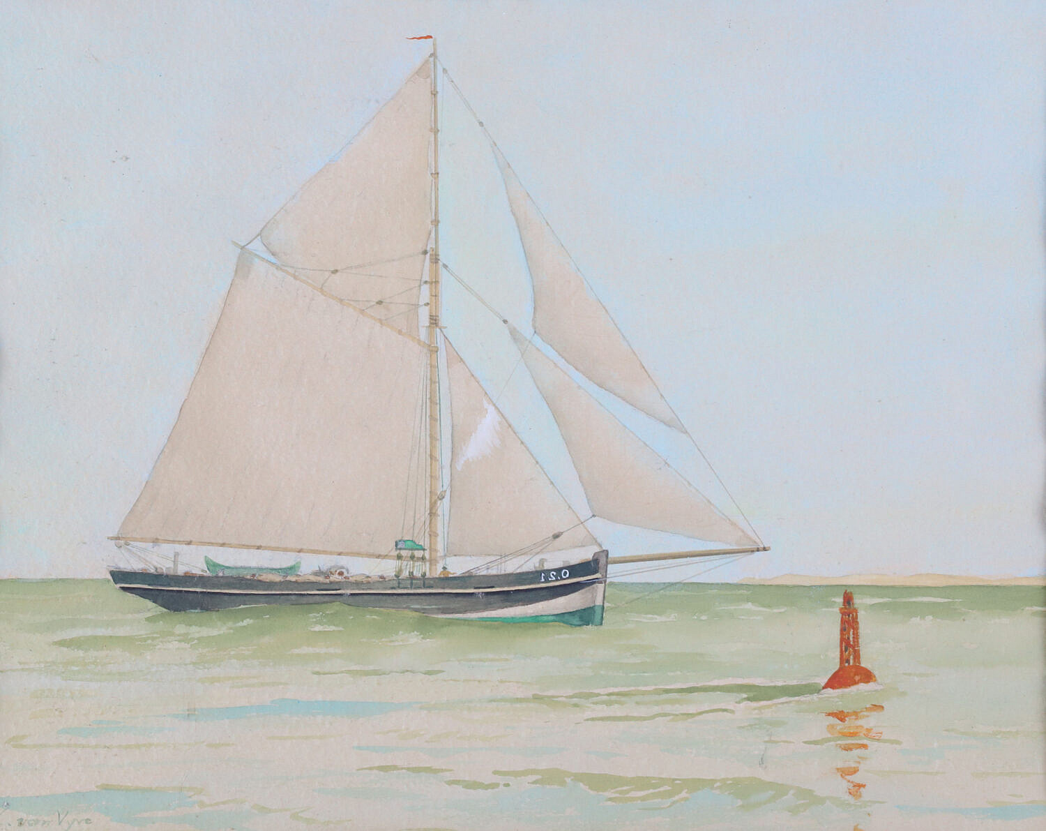Lucien van Vyve Watercolor “Portrait of a Harbor Pilot Boat”, signed lower left L van Vyve, matted and framed