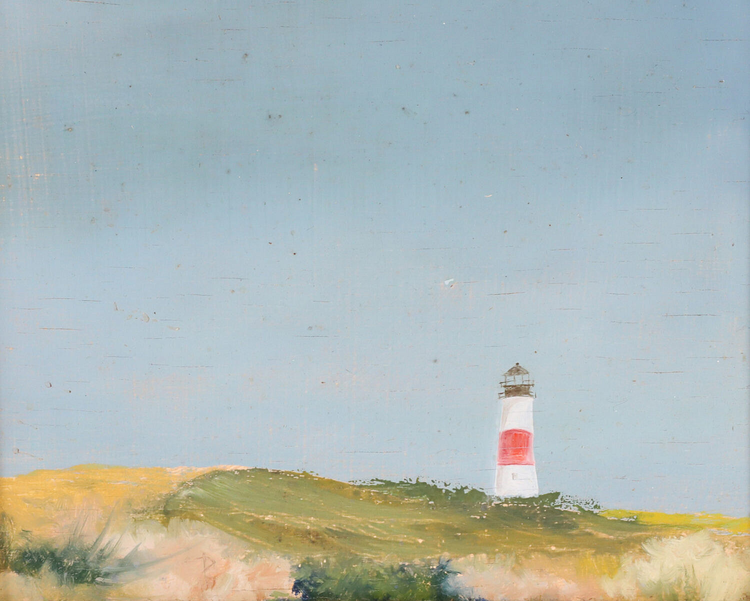 Contemporary Oil on Panel “View of Sankaty Light”, by M J Levy Dickson in molded gilt frame