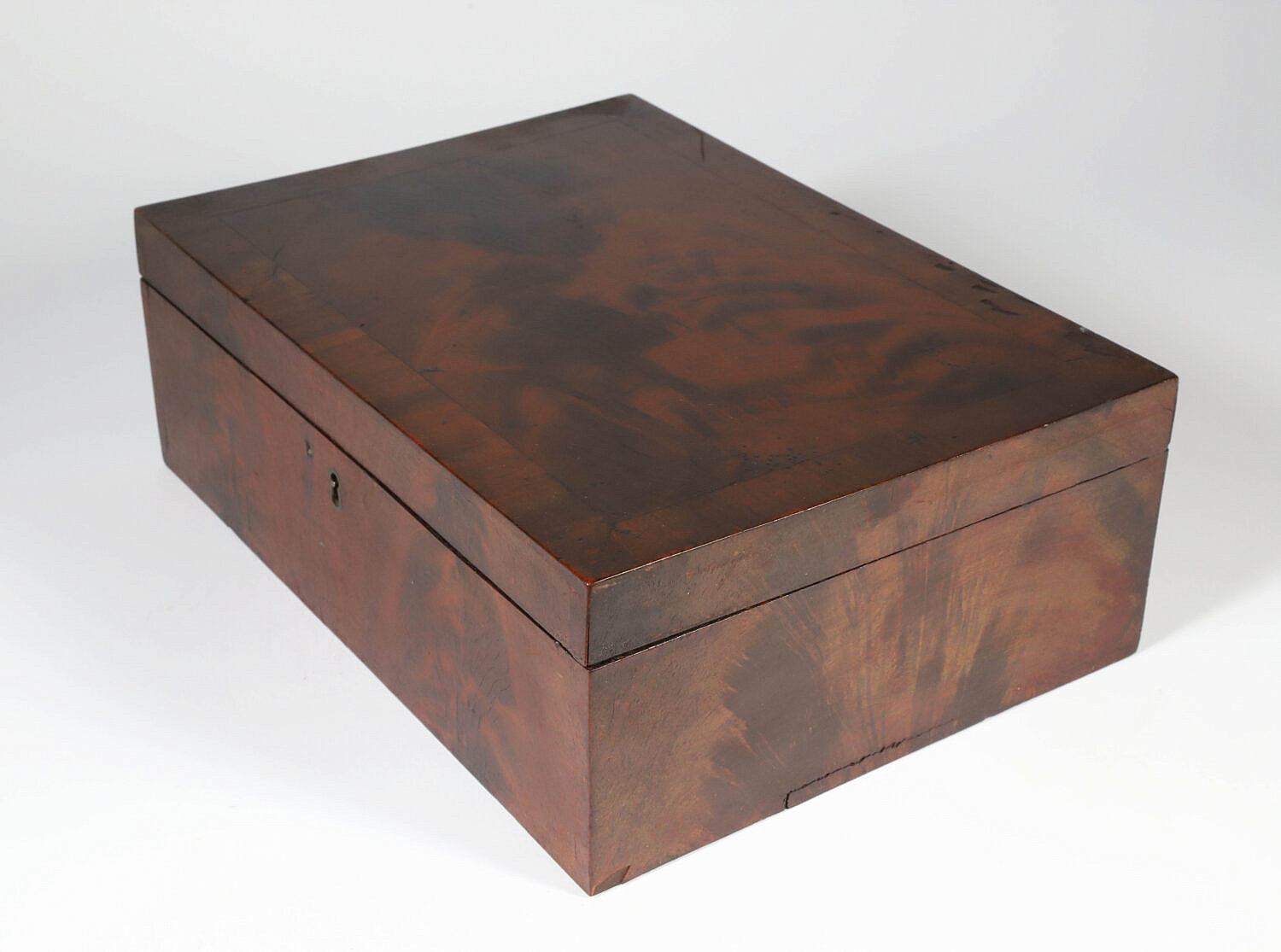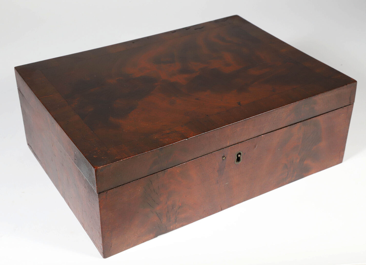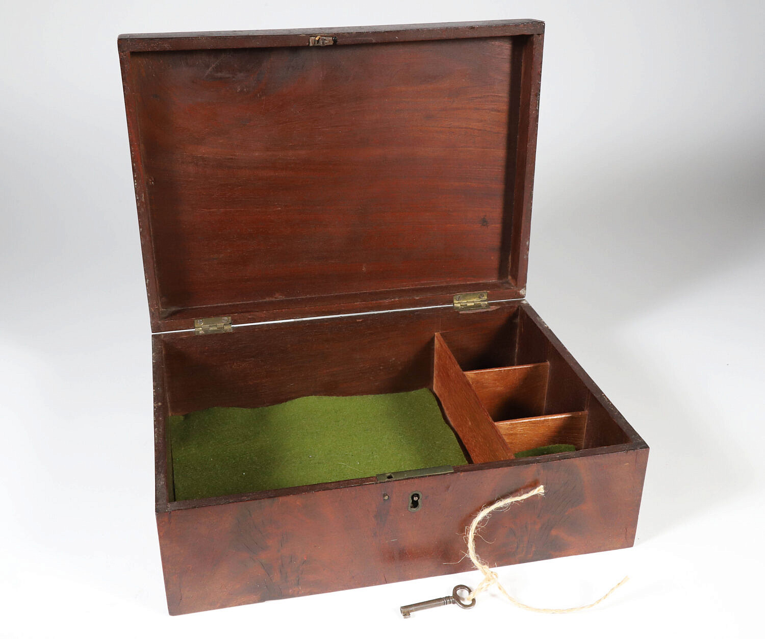 Mahogany Lift Top Jewelry Box with Various Interior Compartments, 19th Century