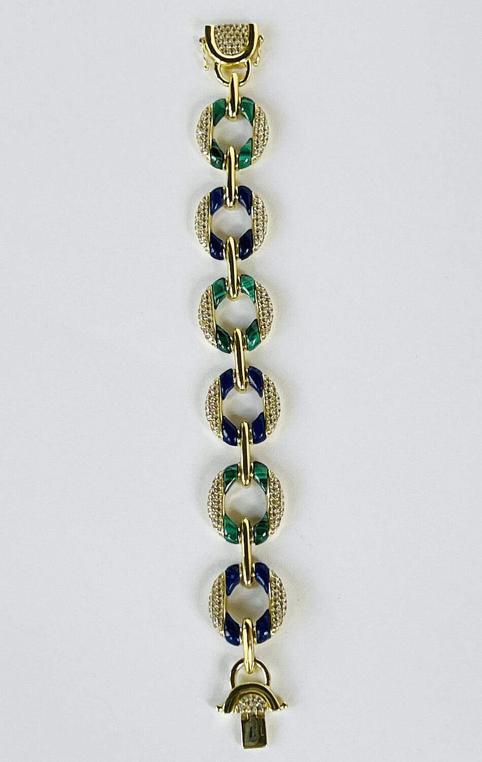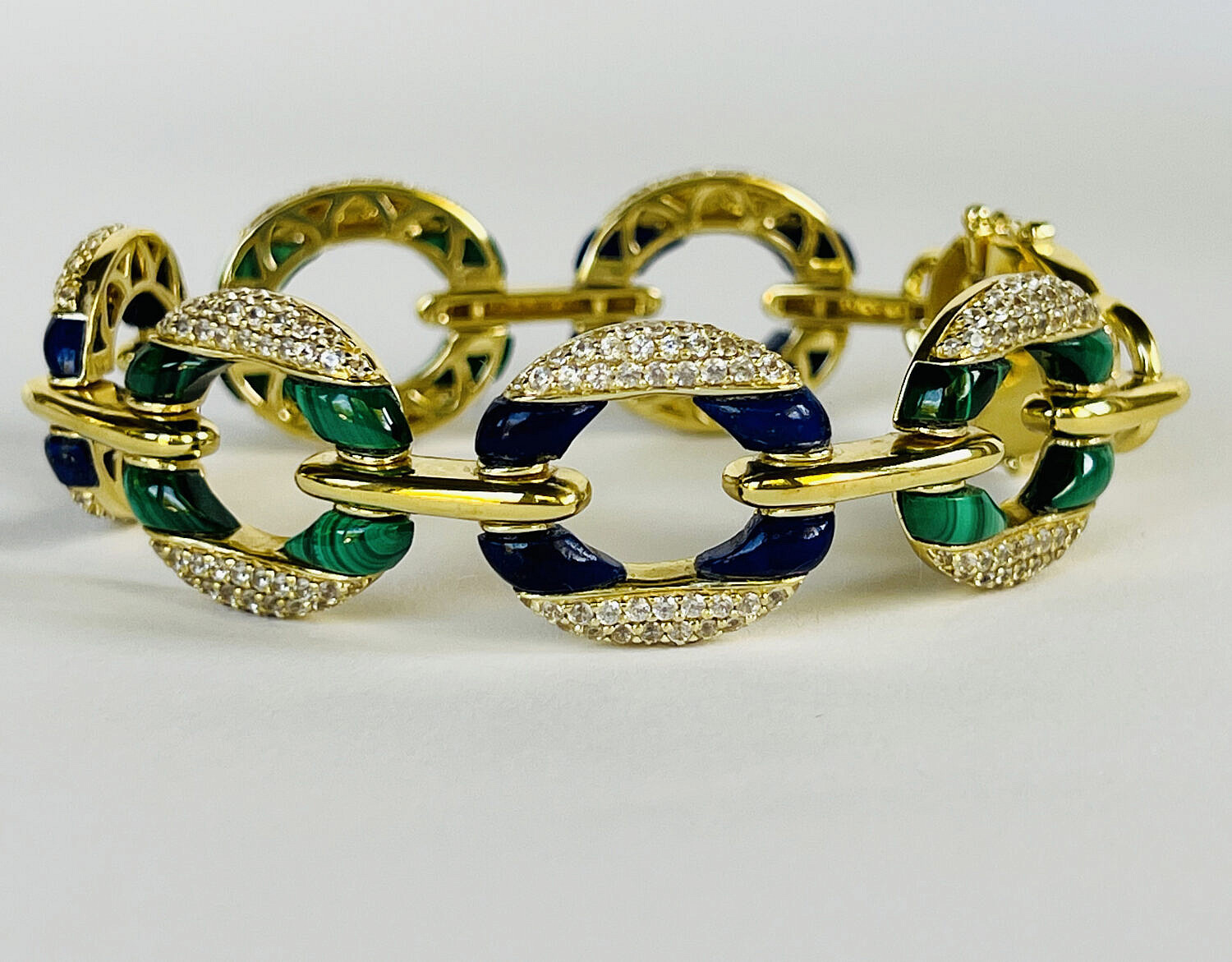 Malachite, Lapis Lazuli, and Natural Zircon Link Bracelet, set in sterling silver vermeil
