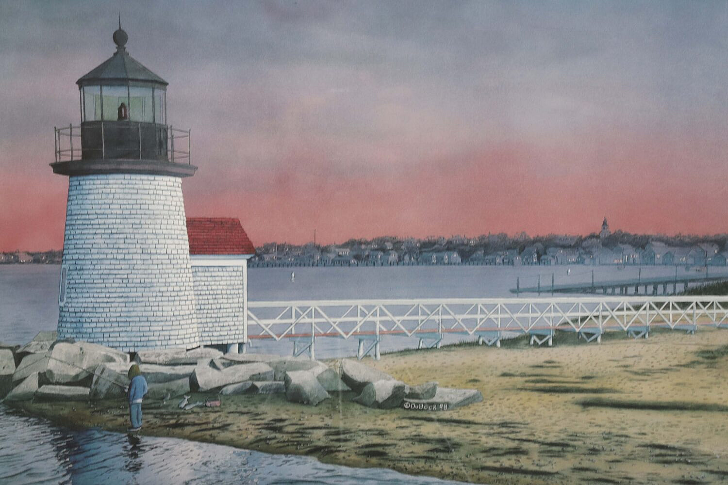Marshall DuBock Limited Edition Lithograph “Harbor Light”, #130/750, wood frame.