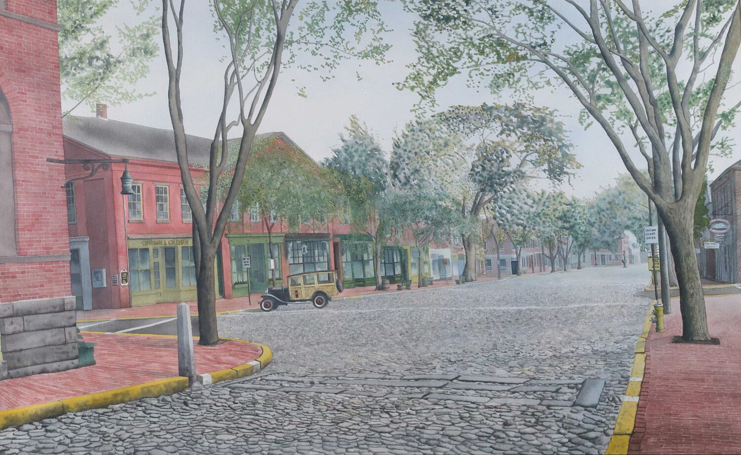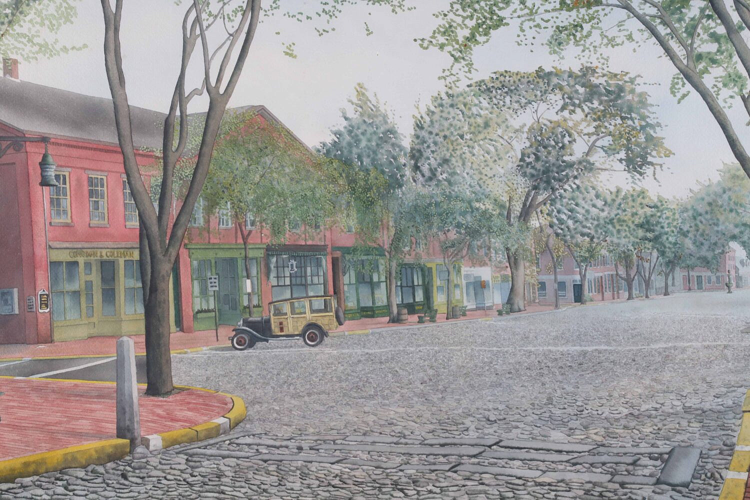 Marshall DuBock (b. 1943) Watercolor On paper “Main Street, Nantucket”, signed lower right DuBock ’76, in wooden frame with liner