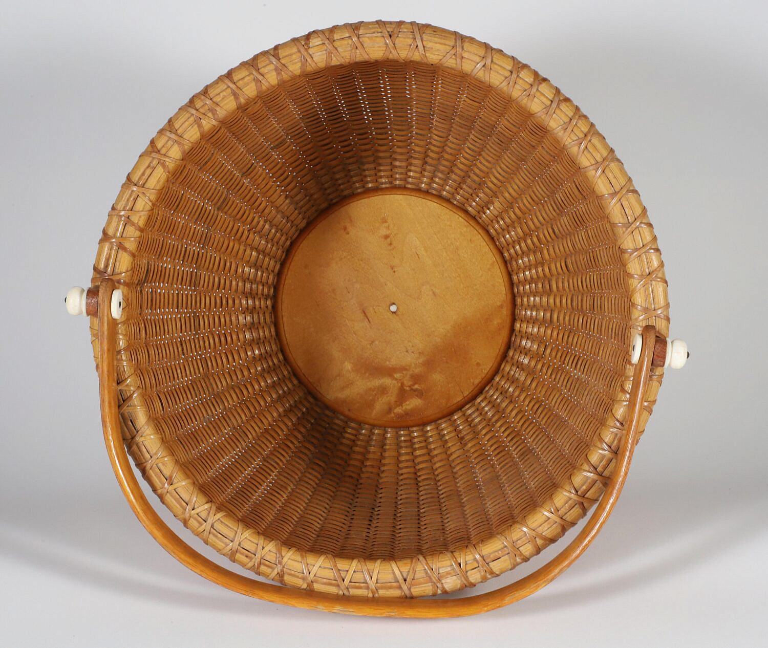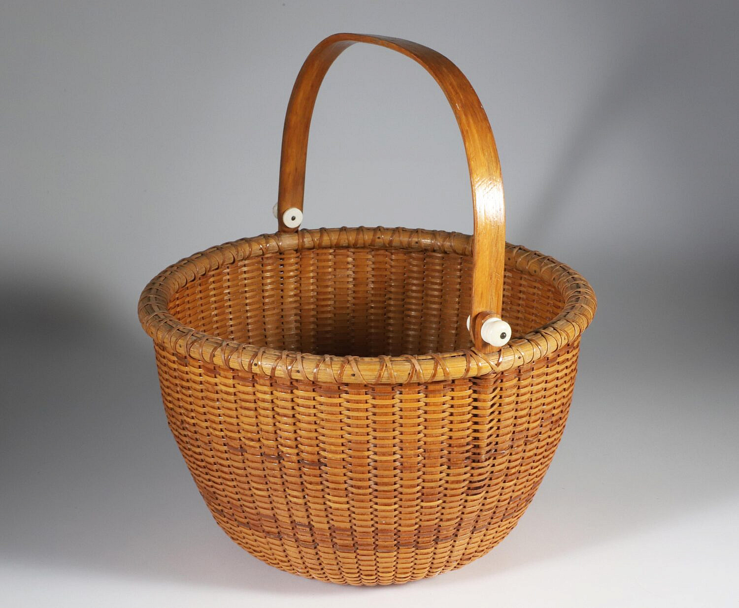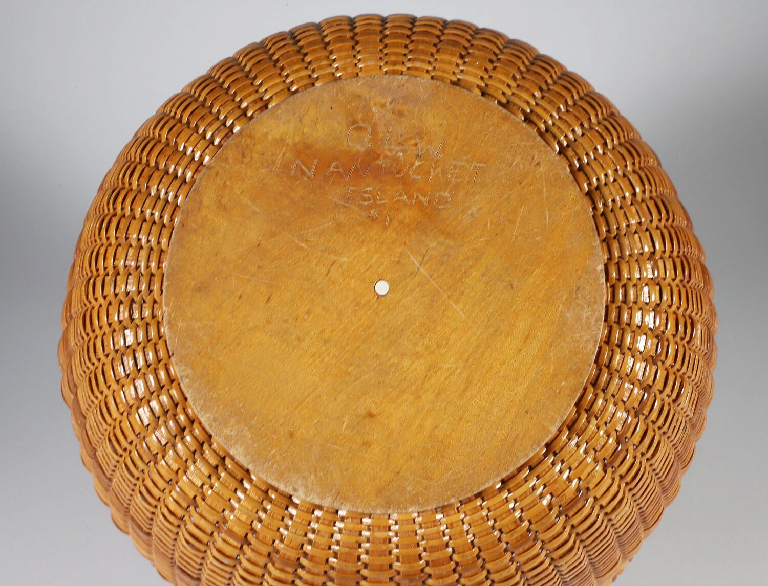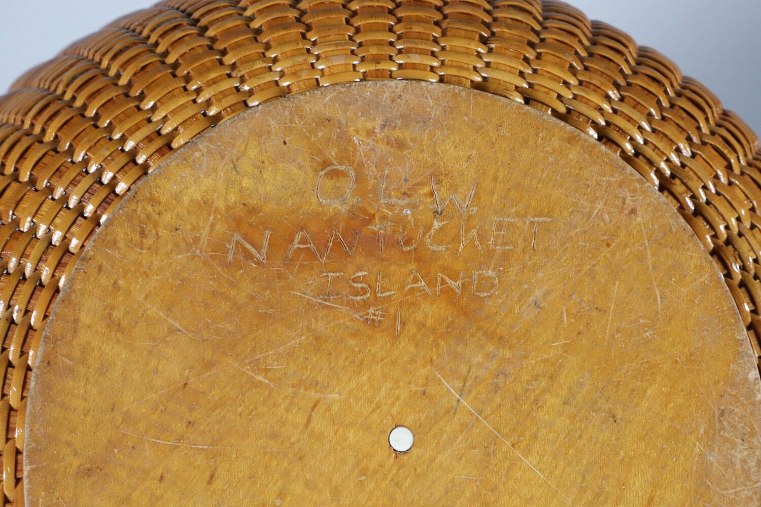 O.L. Whitamore Open Round Swing Handle Nantucket Basket, signed underneath O.L.W. Nantucket #1