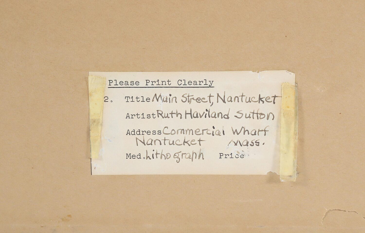 Ruth Haviland Sutton Limited Etching “Main Street Nantucket” Consign Now ArtistRuth Haviland Sutton (1898-1960)Click here for artist bioDeptFine Arts, Nantucket ArtSize9 in. x 13 in. Framed 17 in. x 21 in. Ruth Haviland Sutton (1898-1960) Etching “Main Street Nantucket”, an edition of 150, pencil signed on bottom right, titled lower left, matted and framed 9 in. x 13 in. Framed 17 in. x 21 in. Please note that this auction has ended. Click here for an overview of this auction.