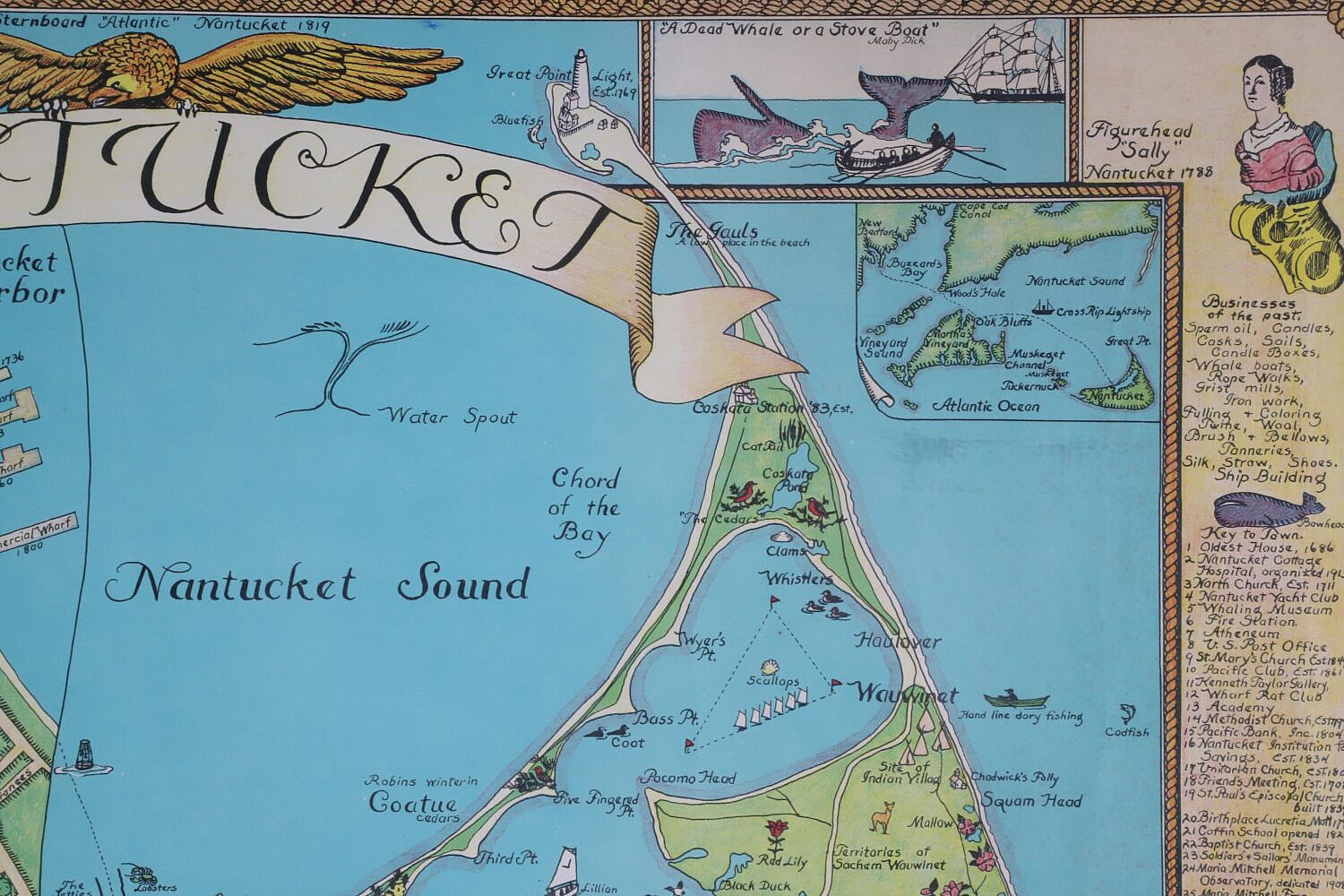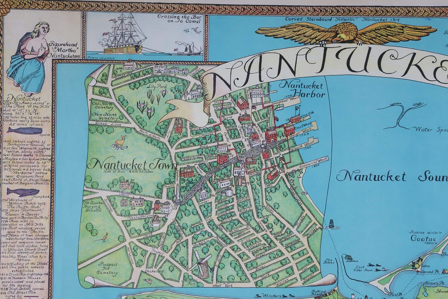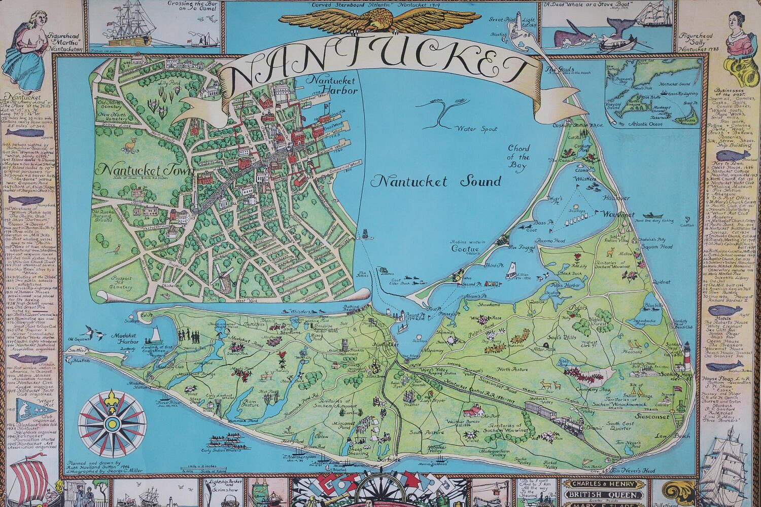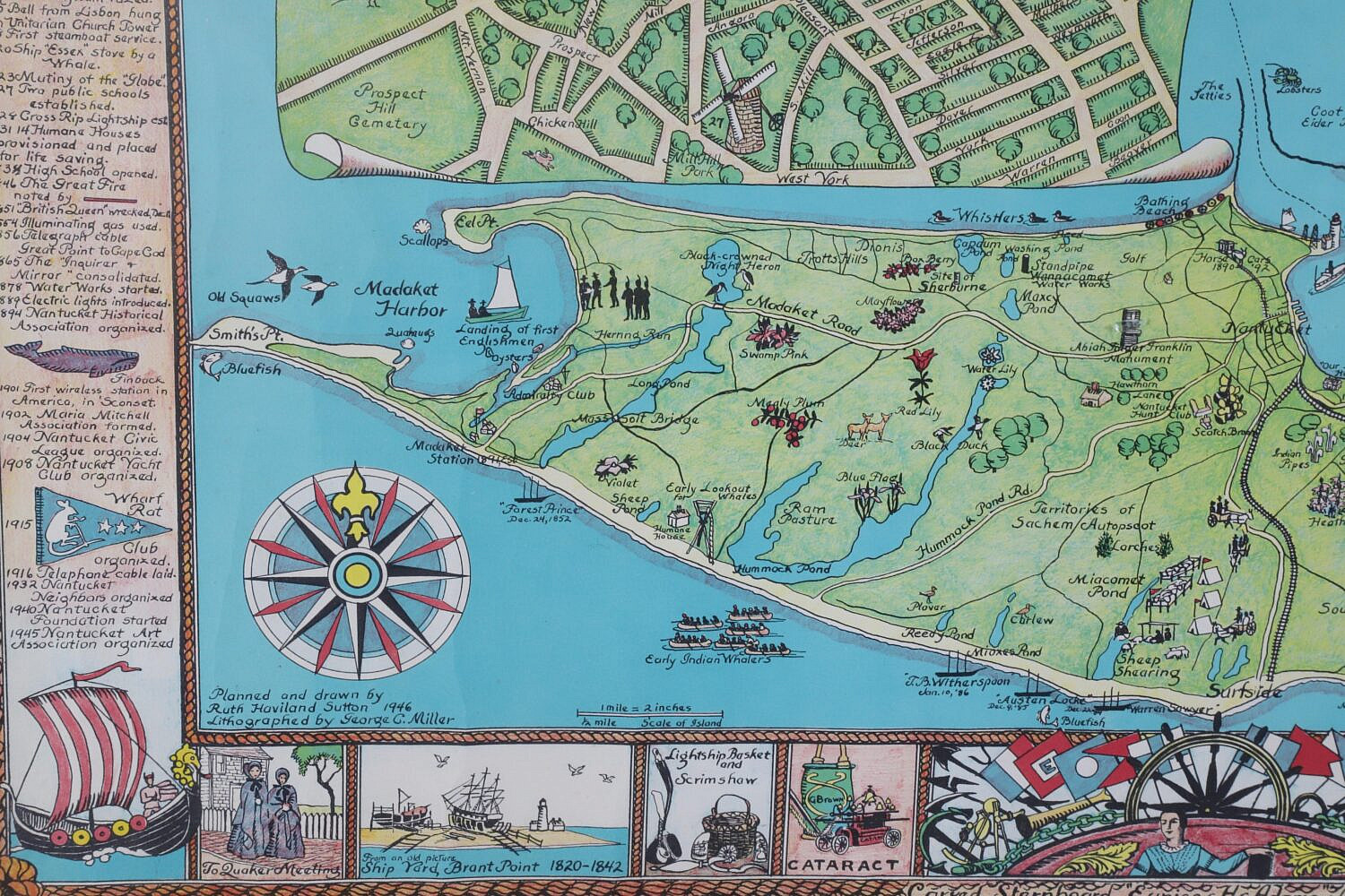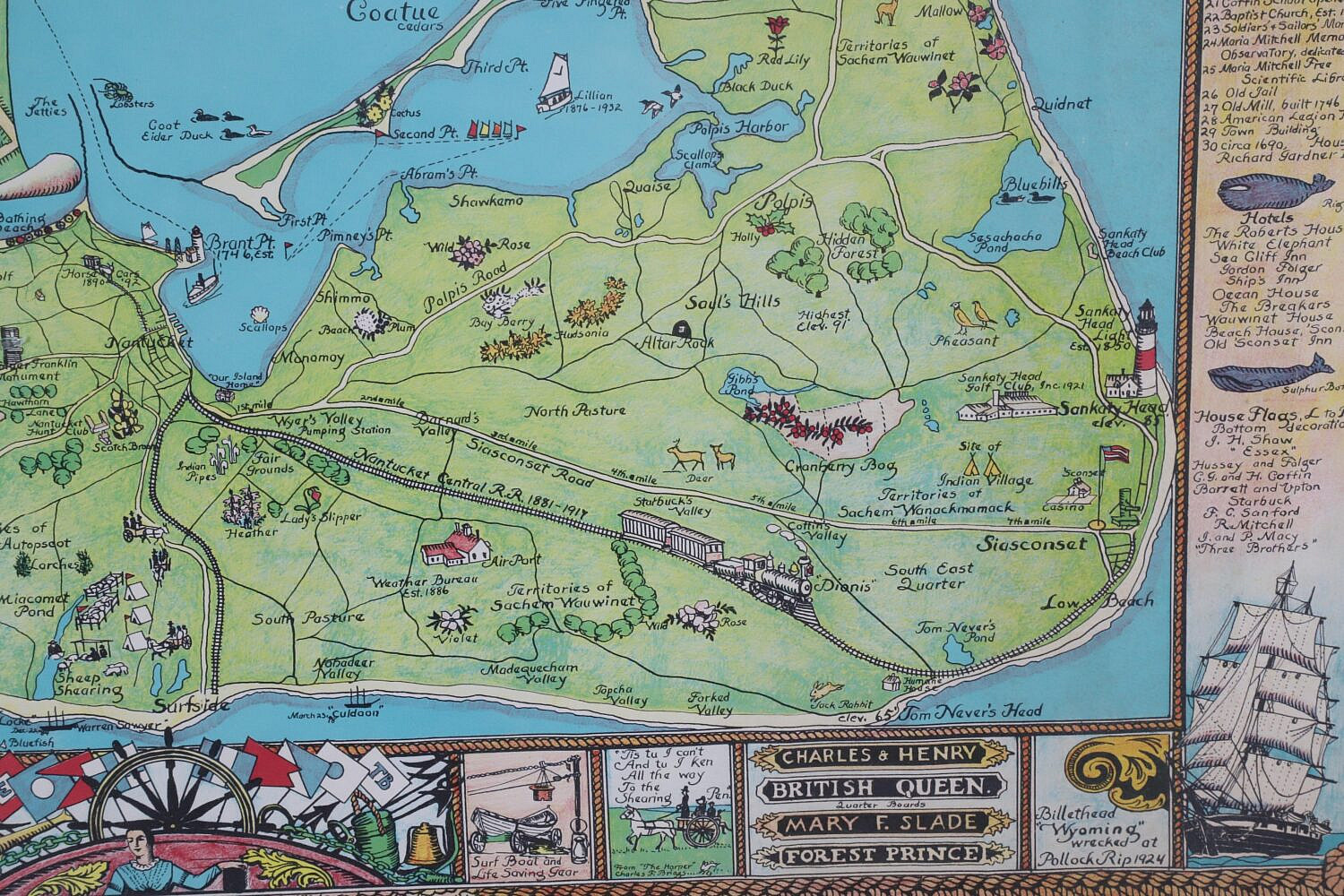 Ruth Haviland Sutton Map of Nantucket Island and Surrounding Historical Details, circa 1964, Copyright George C. Miller & Son