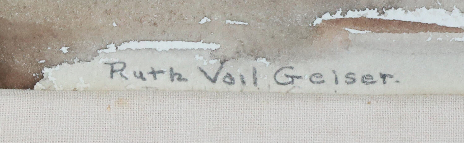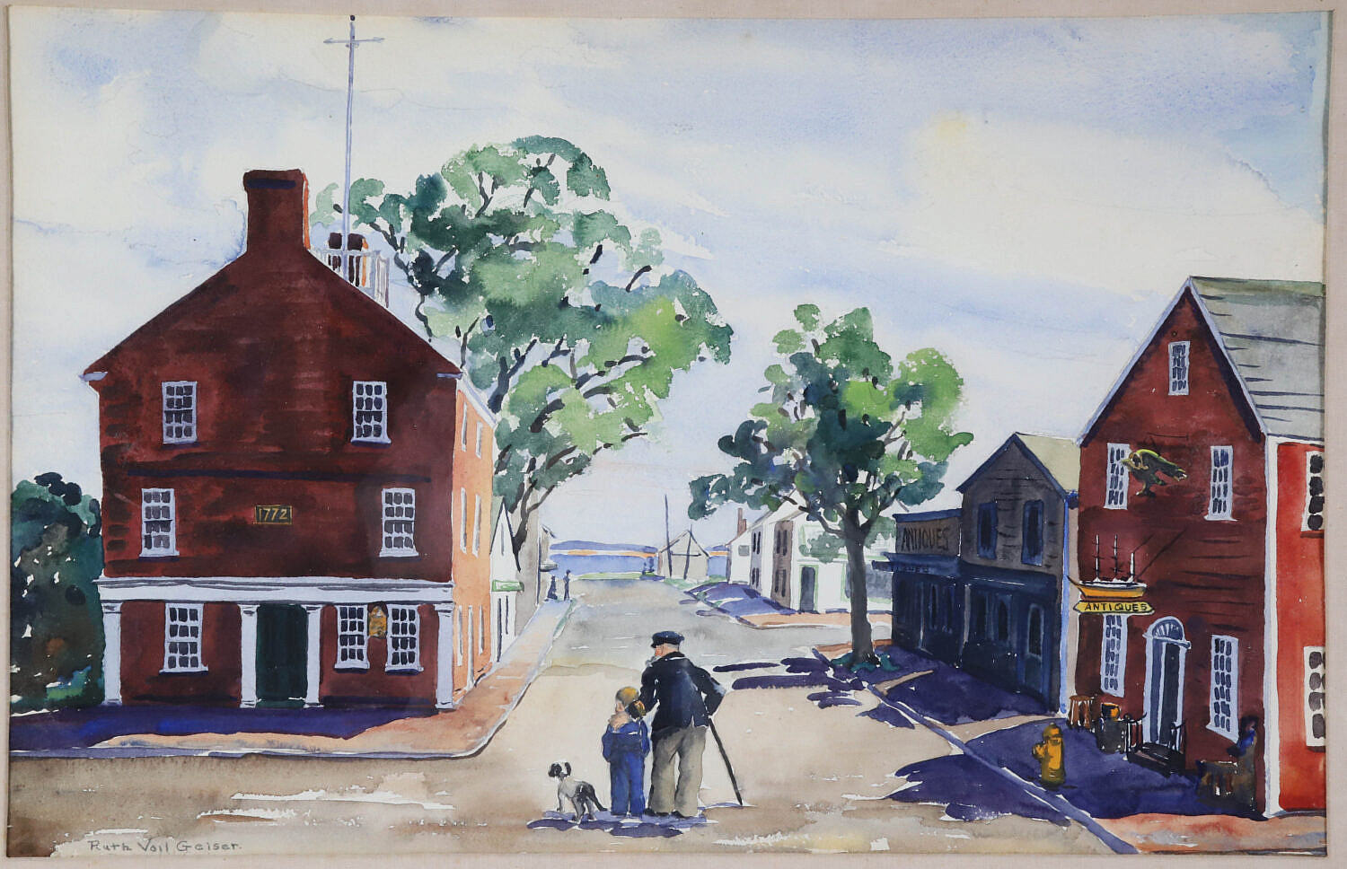 Ruth Vail Geiser Watercolor On Paper “View of Zero Main Street, Nantucket”, signed lower left Ruth Vail Geiser, matted in gilt frame
