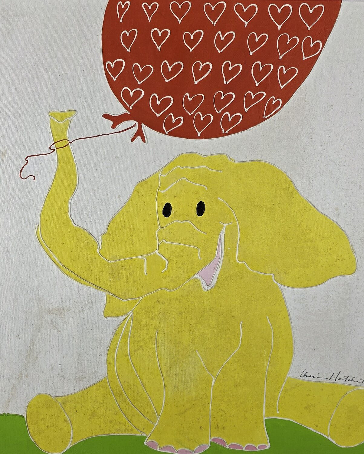 Sharie Hatchett Bohlmann Oil on Canvas Elephant Painting, with raised paint edges, signed lower right.