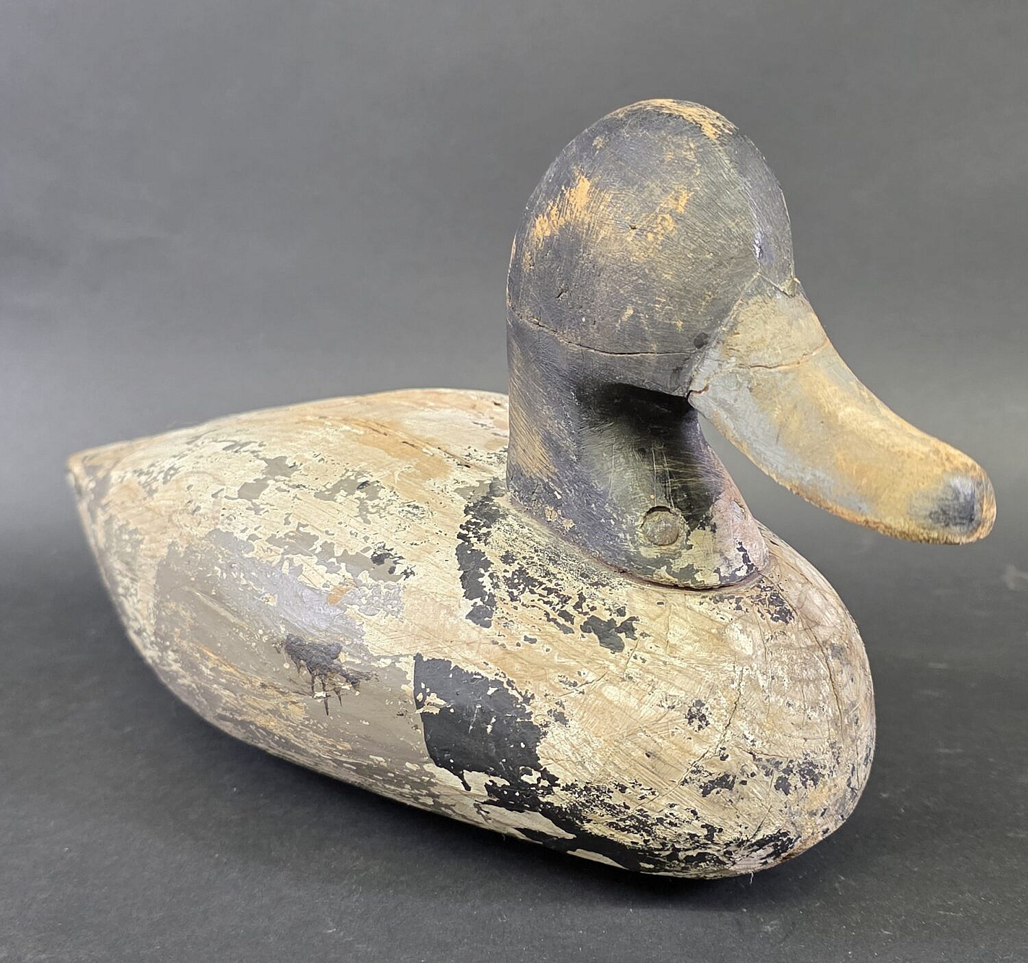 Vintage Carved and Painted Duck Decoy, remnants of old paint.
