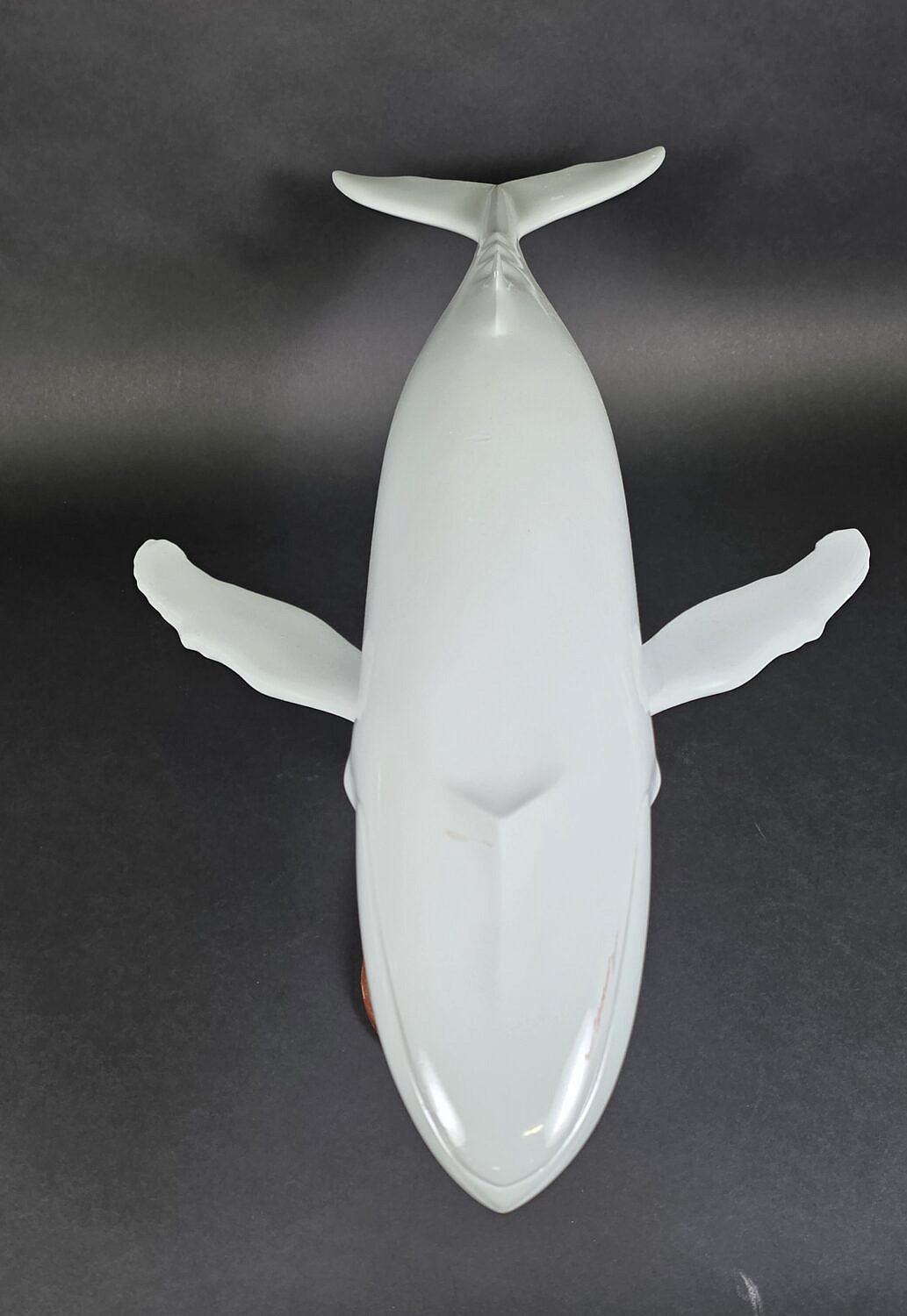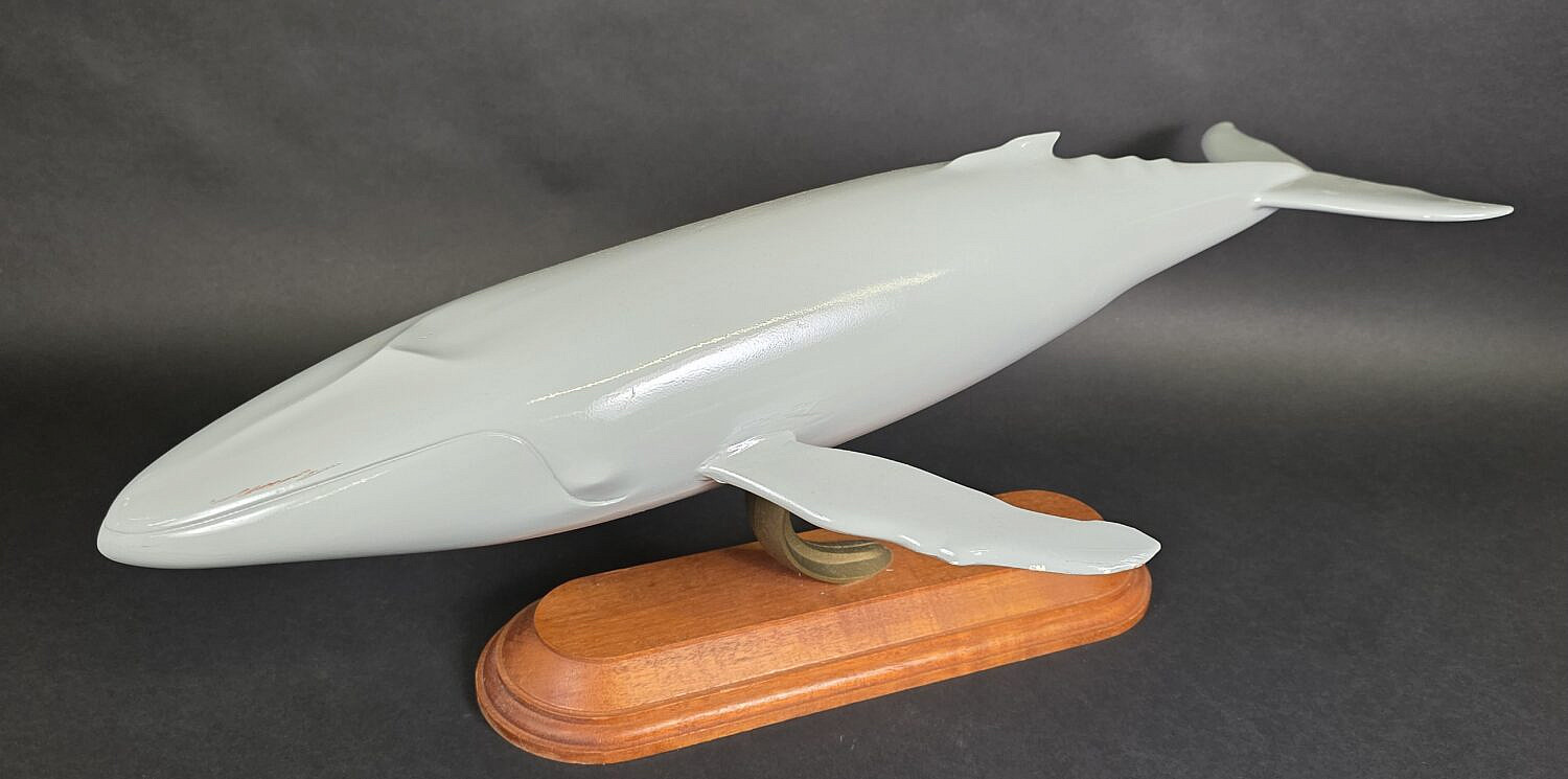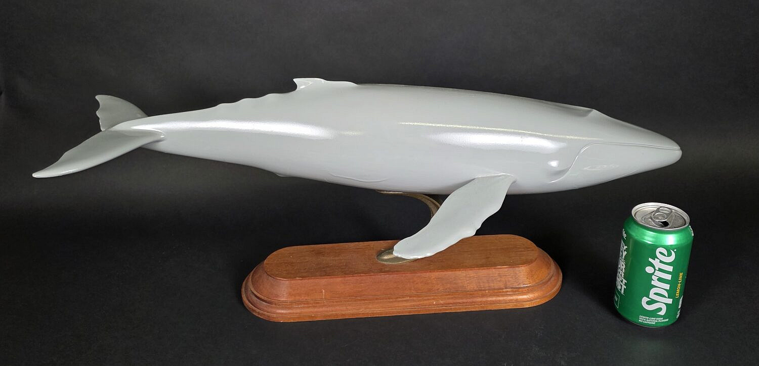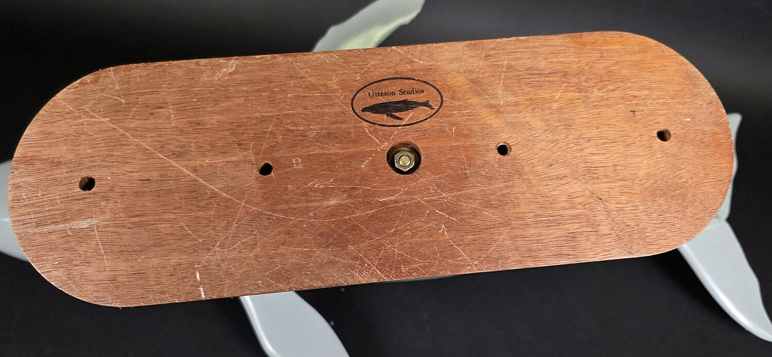 Vintage Carved and Painted Humpback Whale Sculpture, 20th century, stamped on the base, Otteson Studios.