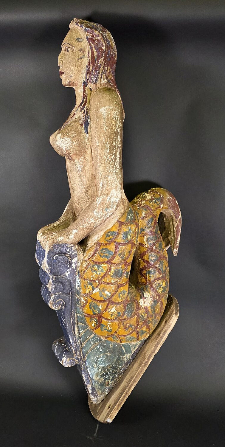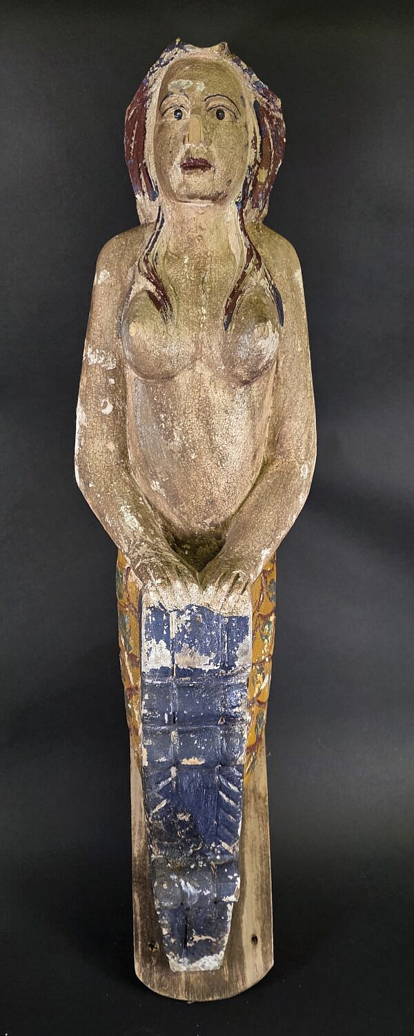 Vintage Carved and Painted Mermaid Ships Figurehead, 20th Century