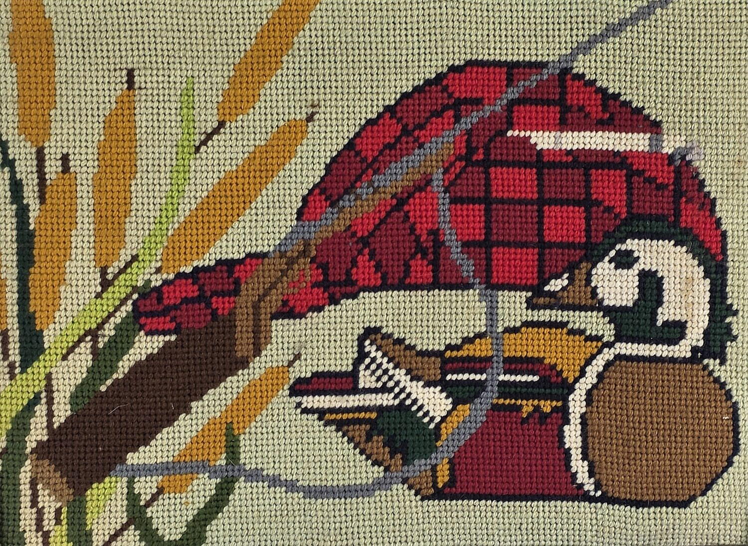 Vintage Duck Hunting Framed Pictorial Needlepoint, 20th century