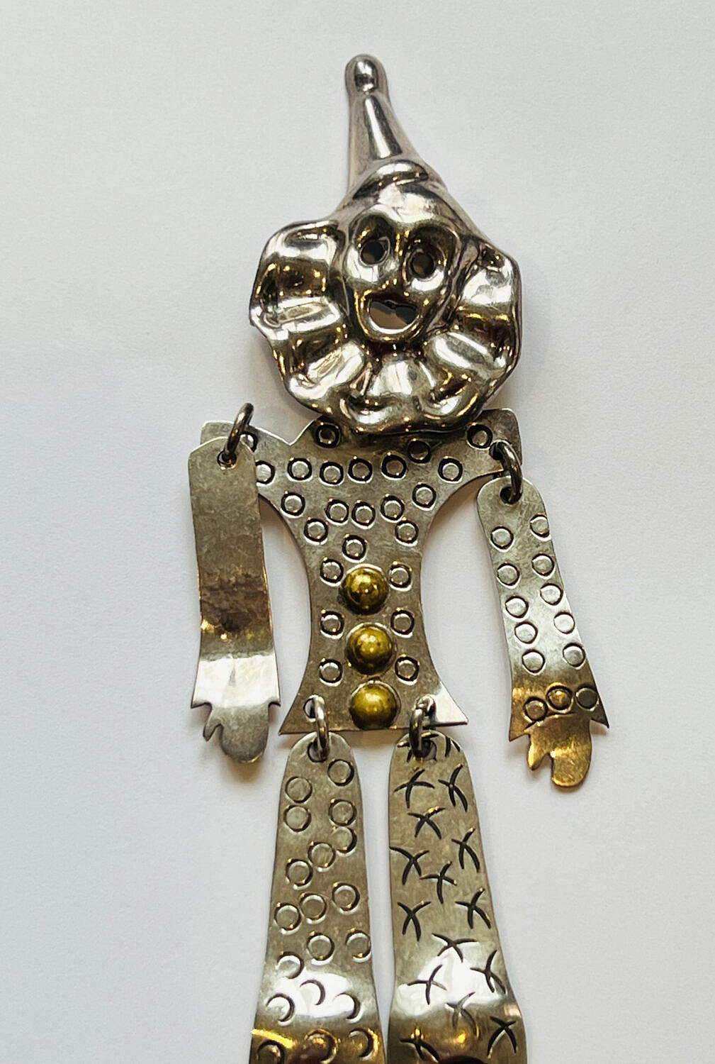 Vintage Mexican 925 Sterling Silver Articulated Clown Broach