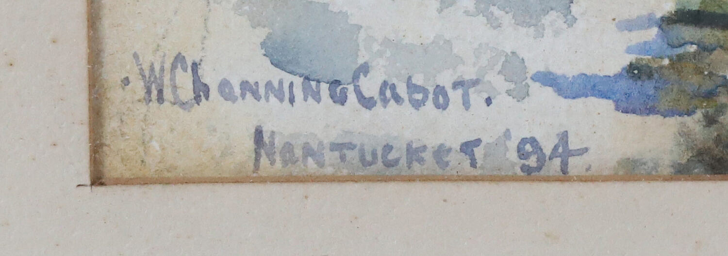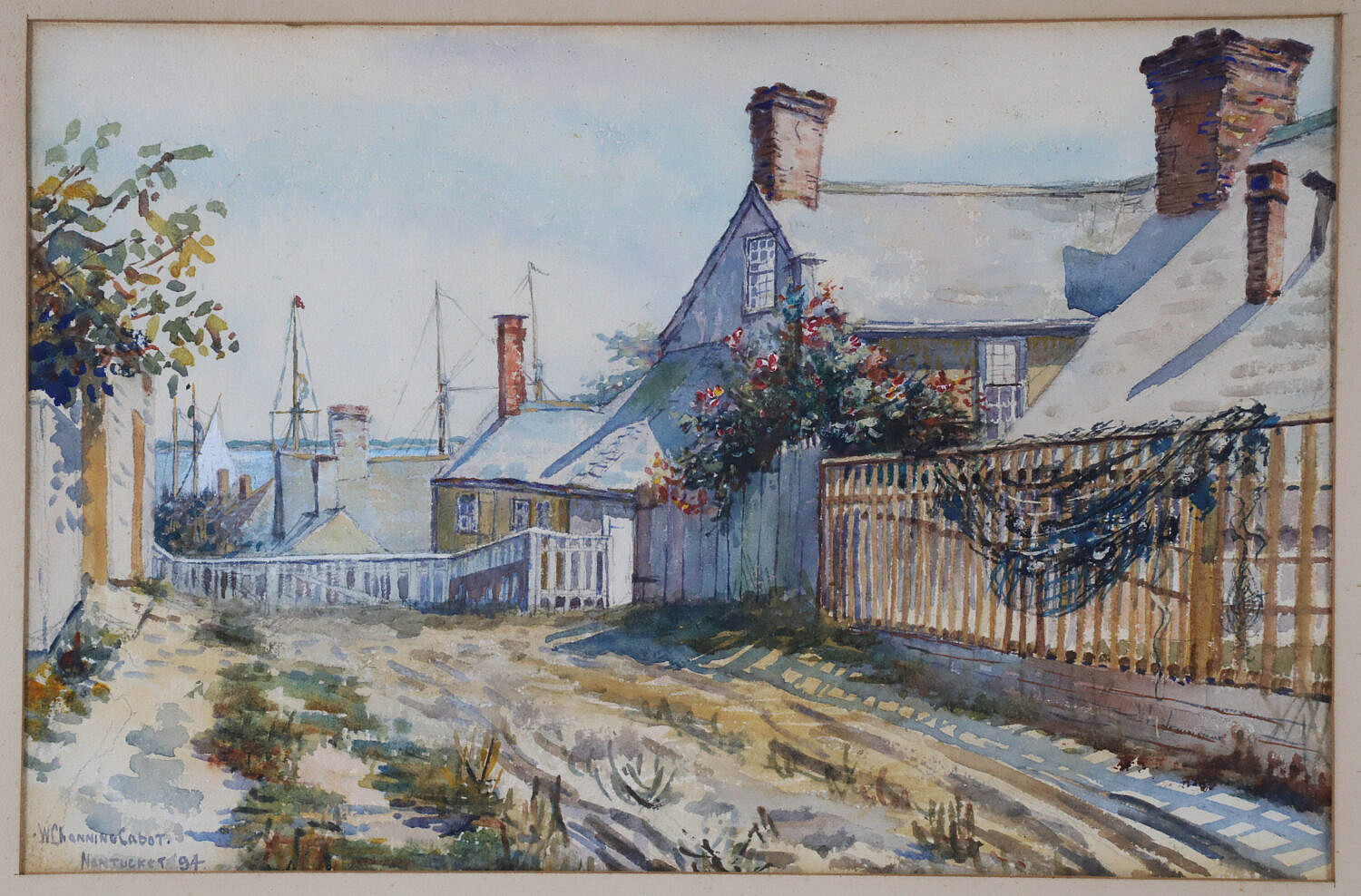 W. Channing Cabot (1868-1932) Watercolor on Paper “Nantucket Street Scene”, circa 1894, signed lower left W. Channing Cabot – Nantucket ’94, matted and framed