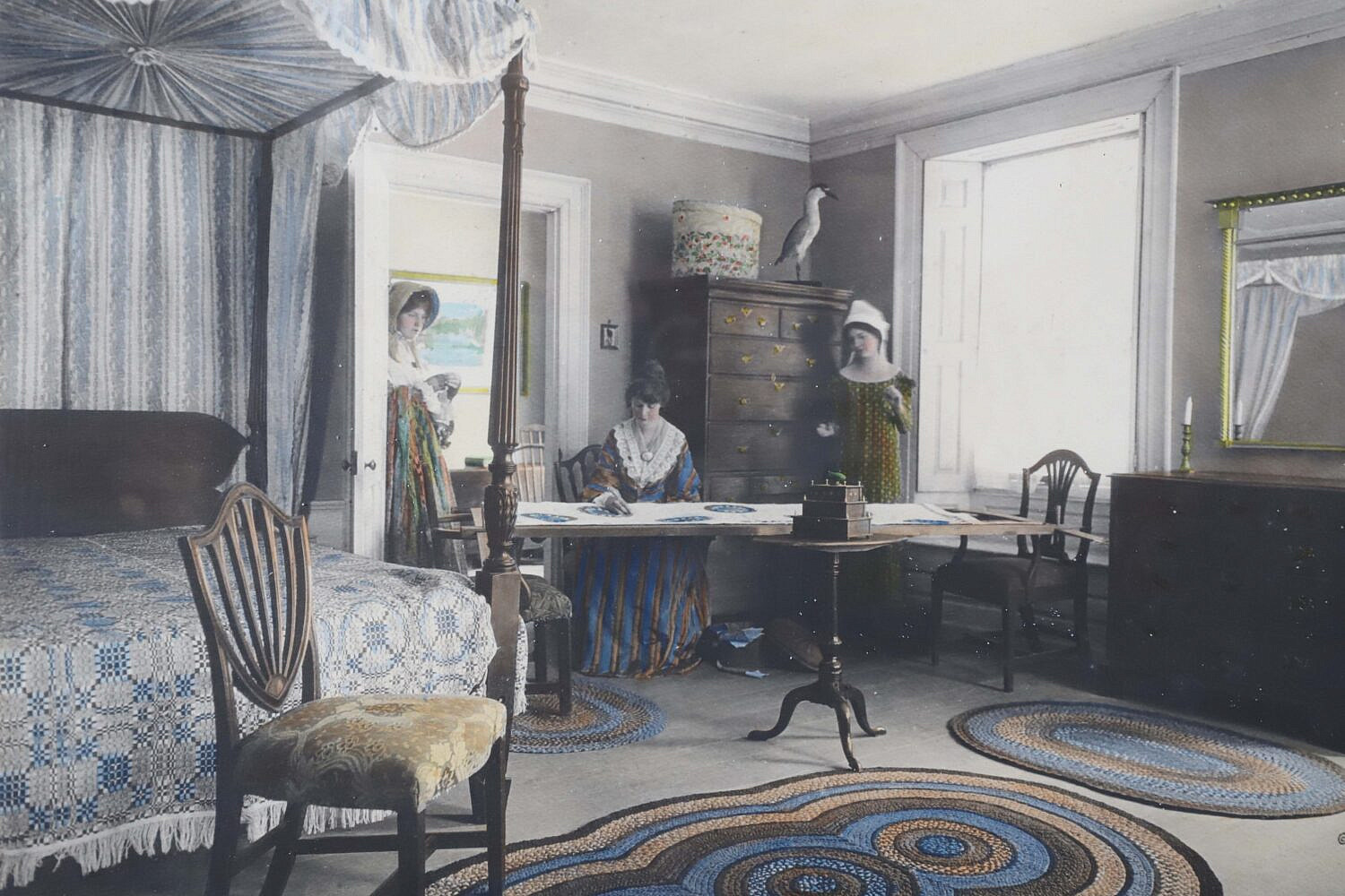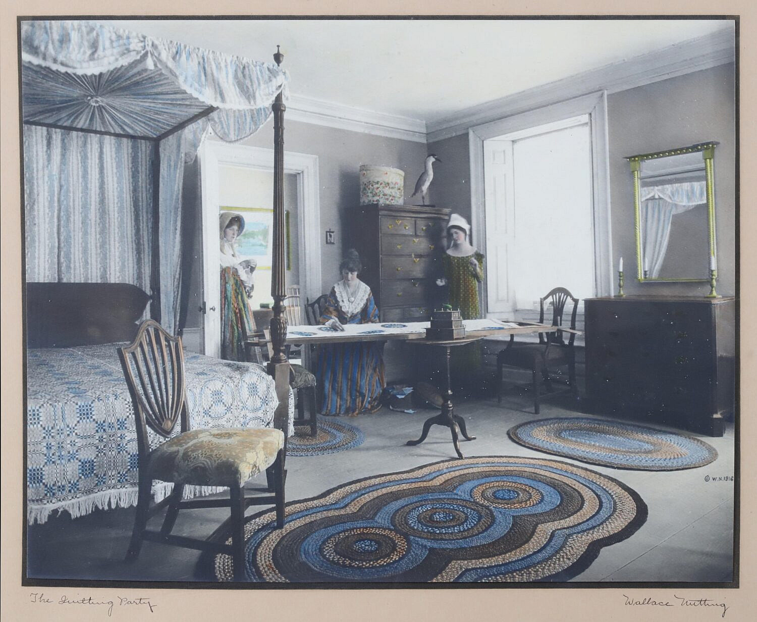 Wallace Nutting (1861-1941) Photograph, “The Quilting Party”, signed and titled in pencil Wallace Nutting, The Quilting Party, matted and framed